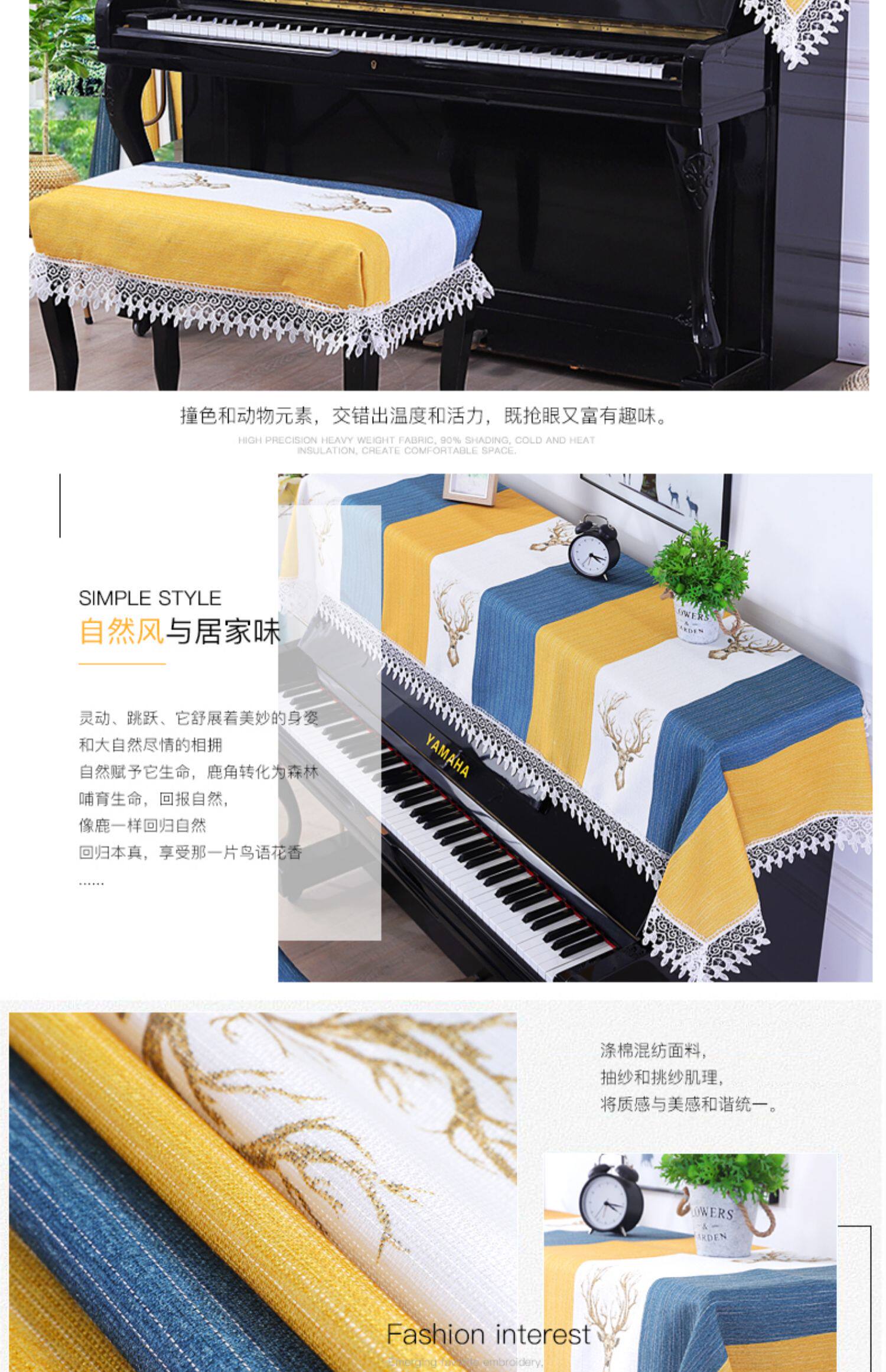 - Полотенце для фортепиано, водорастворимая боковая двойная пианино-крышка скамейки
