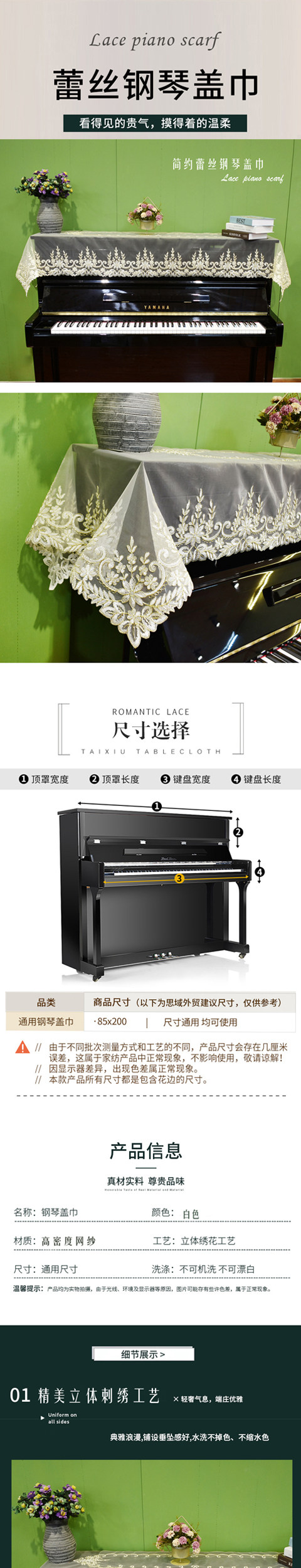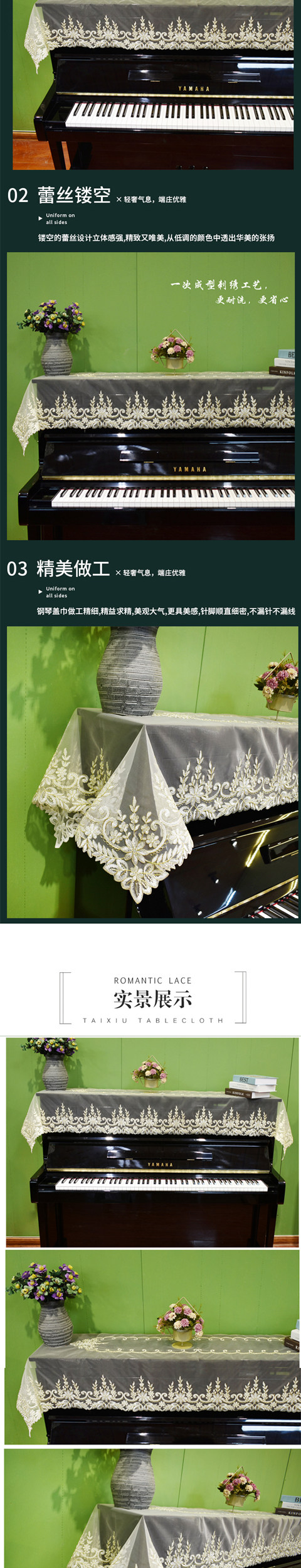 Пианино, прямоугольная пылезащитная крышка, с вышивкой