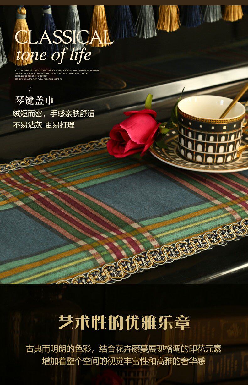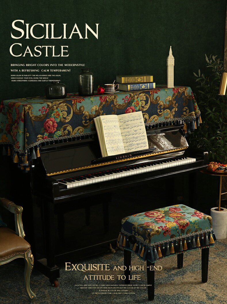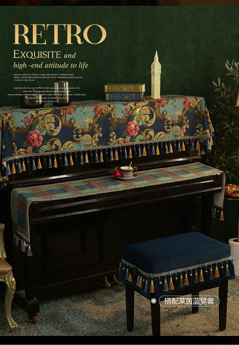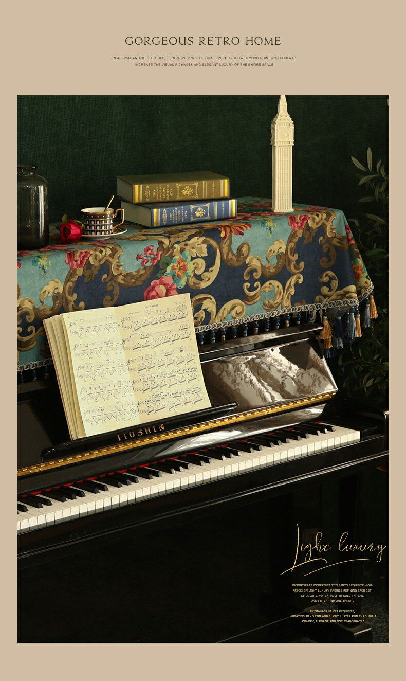 Пианино -капюшон, наполовину покрытый пылью, покрытый пылью, тканевое столешное покрытие, легкое роскошное качество современного американского европейского модельного комнаты