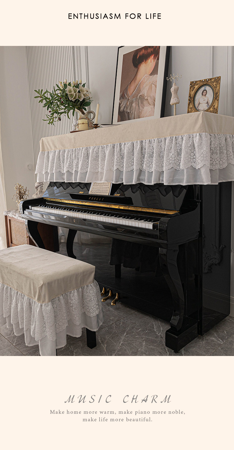 Белое кружевное пианино, бархатная пылезащитная крышка, синтезатор, штора, французский стиль, в американском стиле