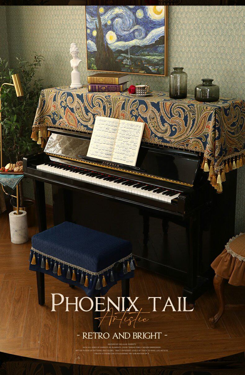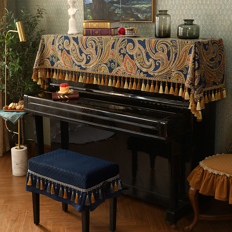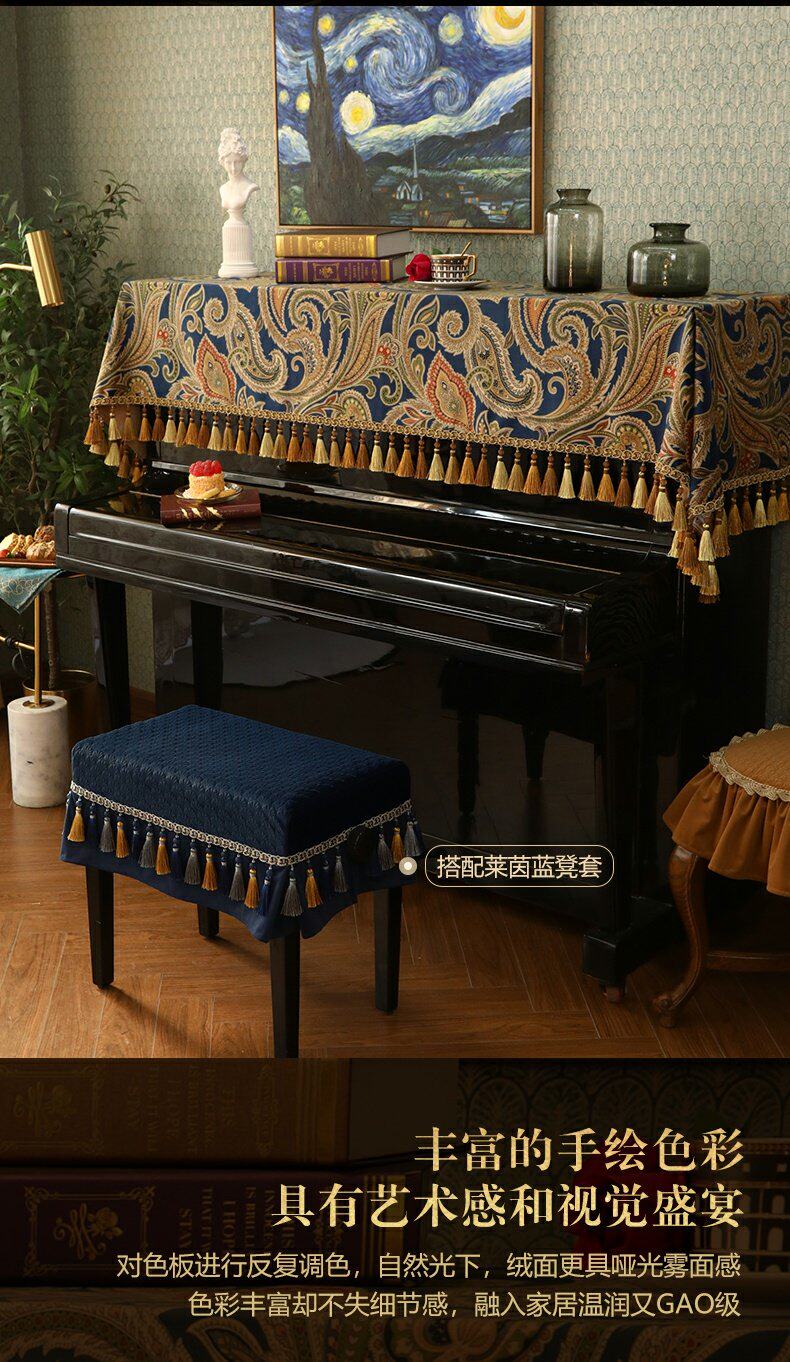 Фортепианная капюшон, половина бархатного пайеропроницаемого покрытого покрытого покрытием, тканевым табуреткой, легкий роскошный современный американский европейский модельный дом