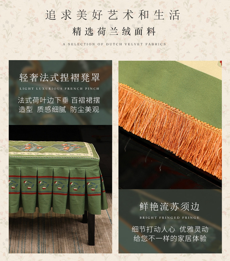 Light Luxury Piano Cood, пылеятный пианино -тканевая крышка, американский ретро -высокий уровень ощущения в европейском стиле роскошного пианино -табурета роскошного пианино
