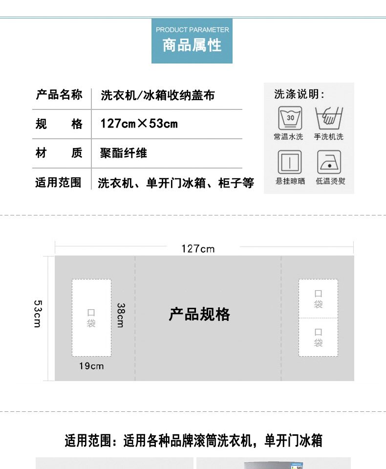 | Технические характеристики: | Небольшой холодильник стиральная машина 50*130, Один открытый холодильник стиральная машина 55*130, Небольшой двойной холодильник 60*150, Большой двойной открытый холодильник 68*170, Микроволновая печь, духовка универсального бокового кармана 35*95, Пользовательский контакт с клиентами, не снимайте |