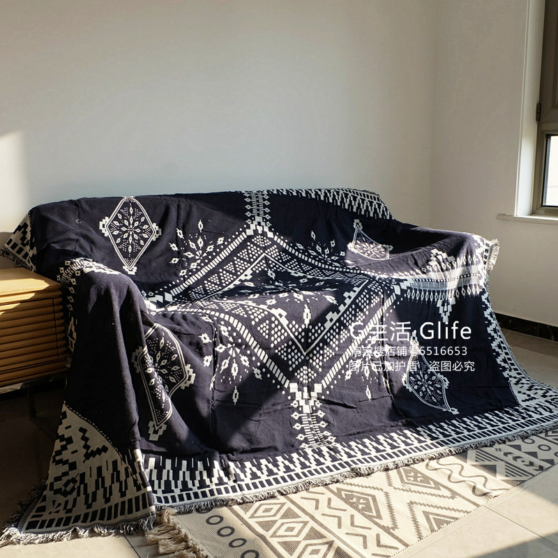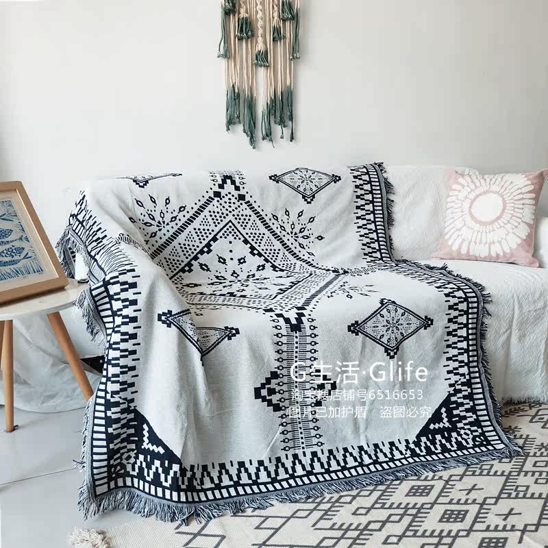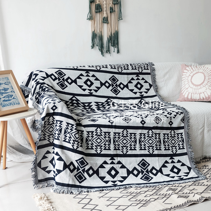 В скандинавском и американском простом лесном стиле в этническом стиле тканое одеяло с нитками, полотенце для дивана, декоративный коврик для эркера, скатерть, чехол с кисточками