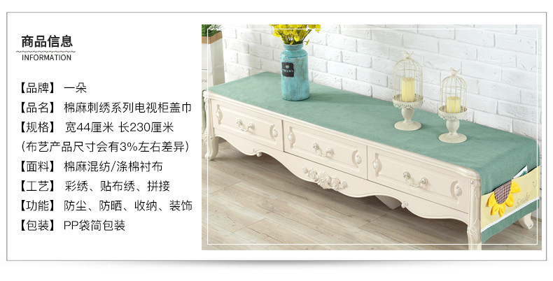Ткань, мебель, прямоугольная пылезащитная крышка, с вышивкой, из хлопка и льна