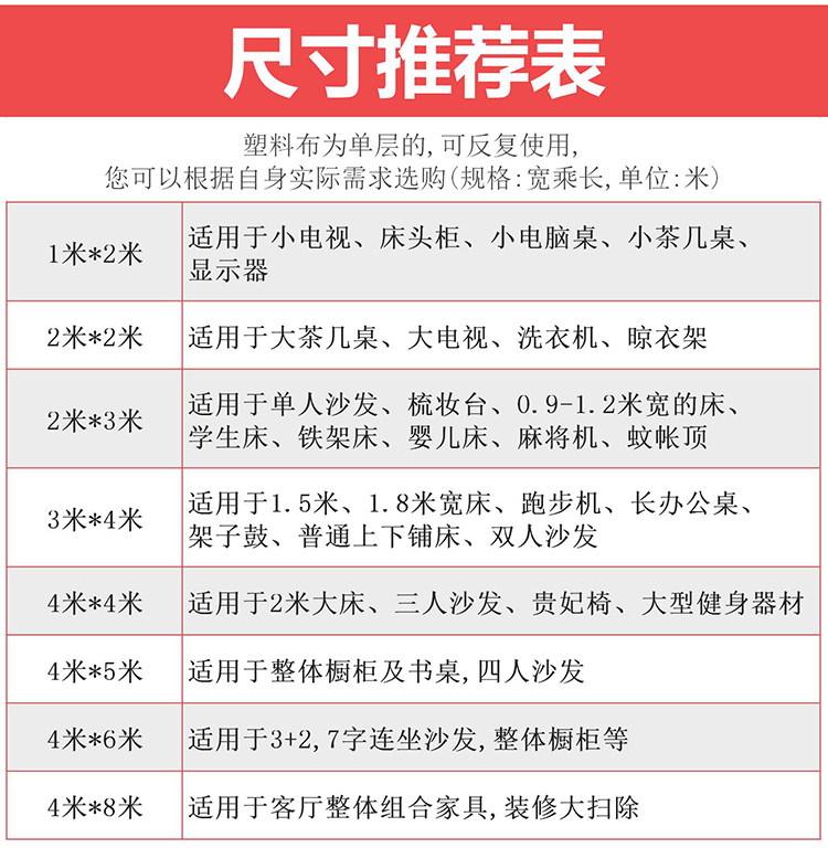 | Технические характеристики: | 1 метр*2 метра (прикроватная столик микроволновая печь), 2 метра*2 метра (большая телевизионная стиральная машина), Туалетный столик для школьников, 2м, 3м, 2м, Диван, кроватка, 2м, 3м, Диван для двоих, 3м, 4м, 4 метра*4 метра (увеличение двуспальной кровати), 4 метра*5 метров (двойная шкафа для шкафного покрытия), 4 метра * 6 метров (L-образный диван с журнальным столиком), 4 метра * 8 метров (U-образный диван с журнальным столиком), 4 метра*10 метров (общее покрытие оформления) |