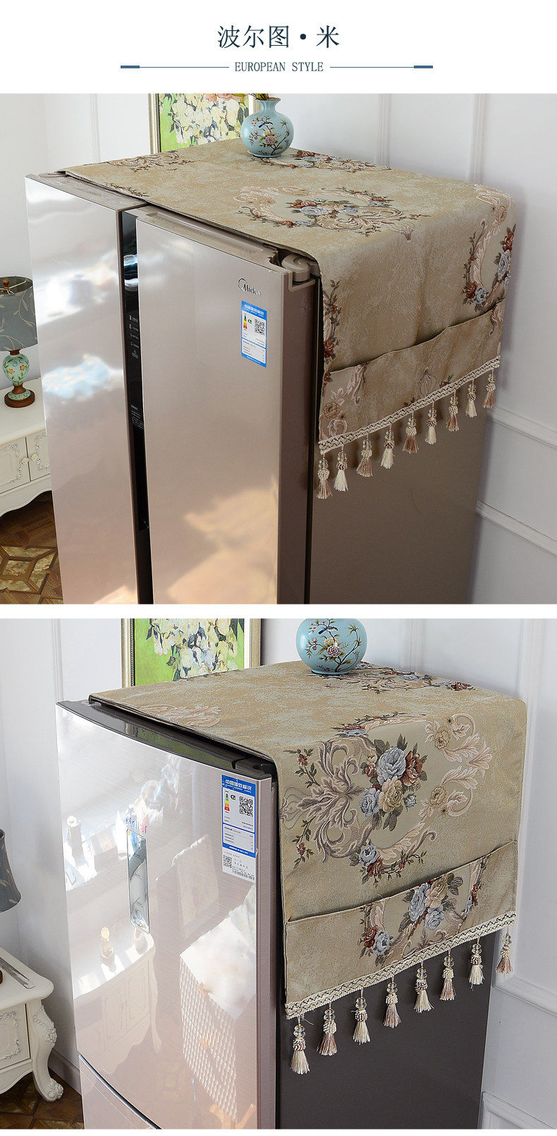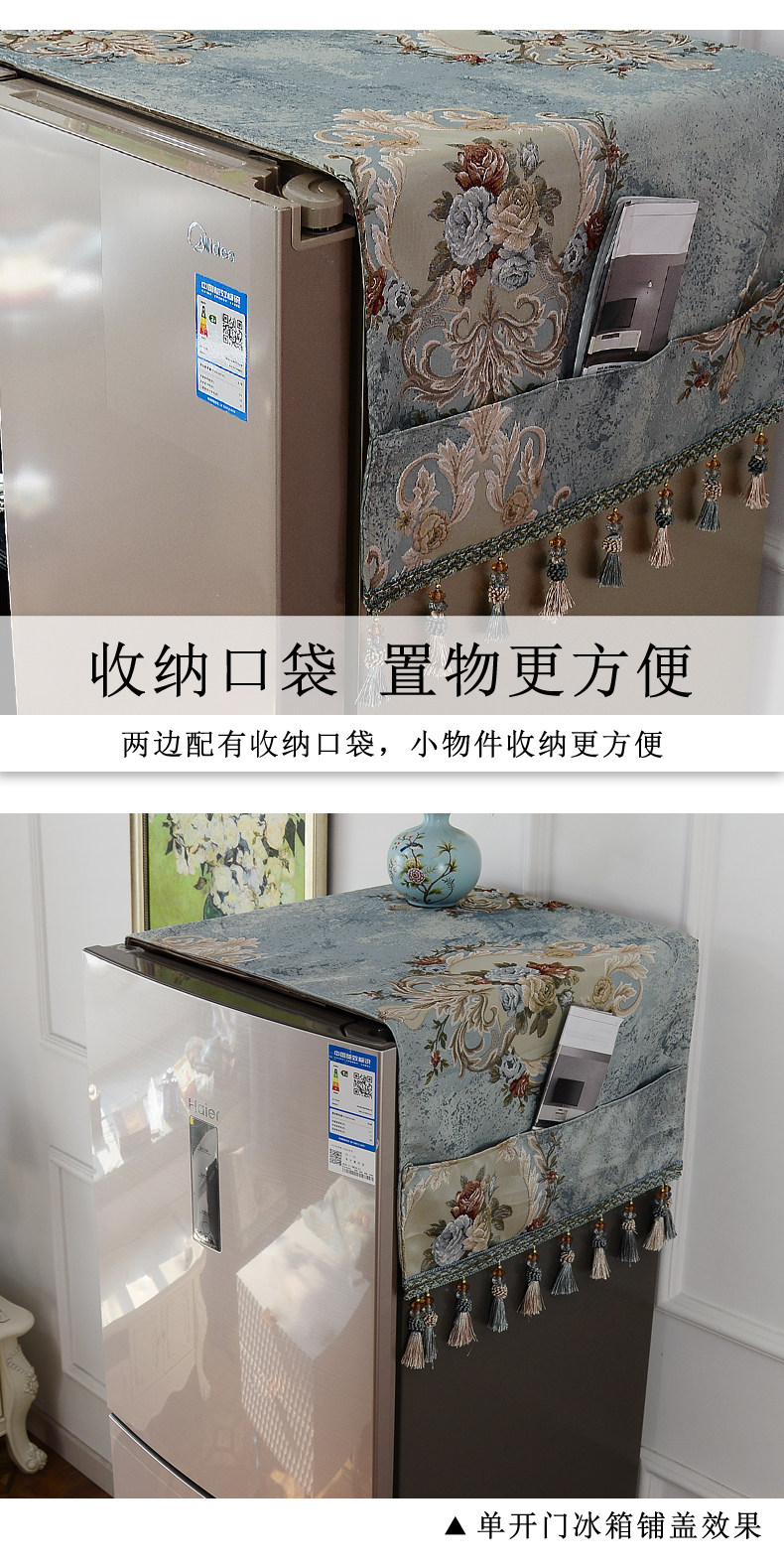 Двойная деревенская крышка холодильника европейская стиль односторонняя крышка с серым домом дома Американское прачечное холодильное покрытие покрытое полотенцем