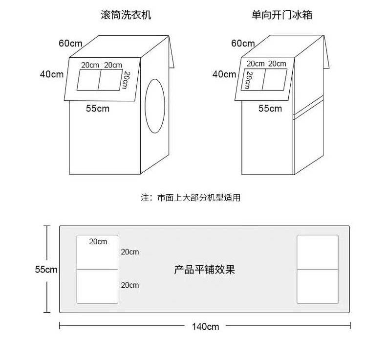 - 140*55см (доступно для стиральных машин барабанного типа, холодильников с верхней и нижней дверцей)