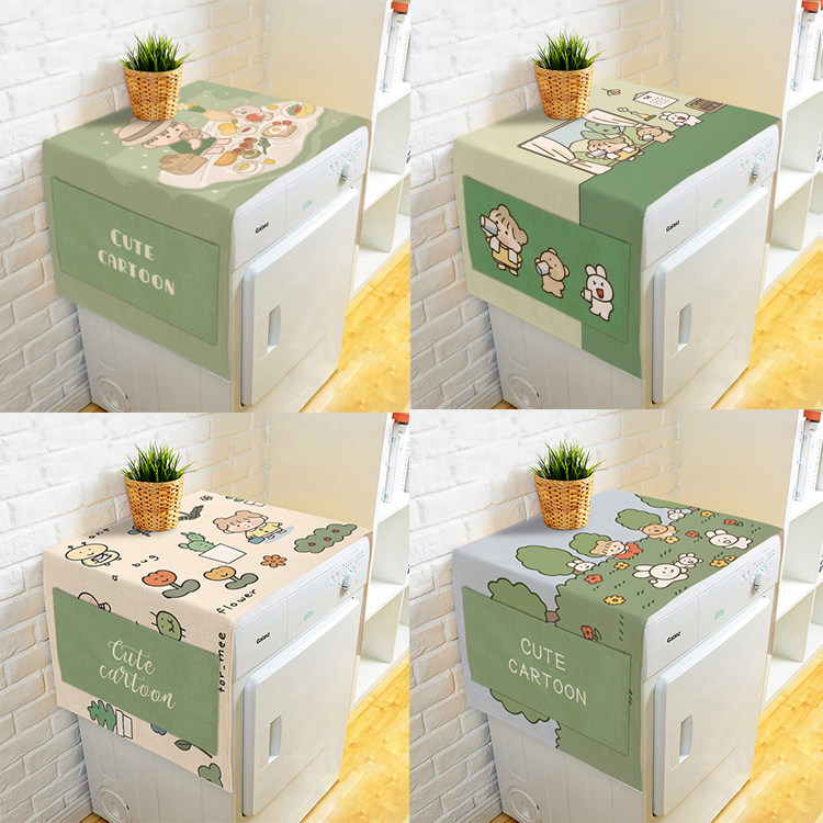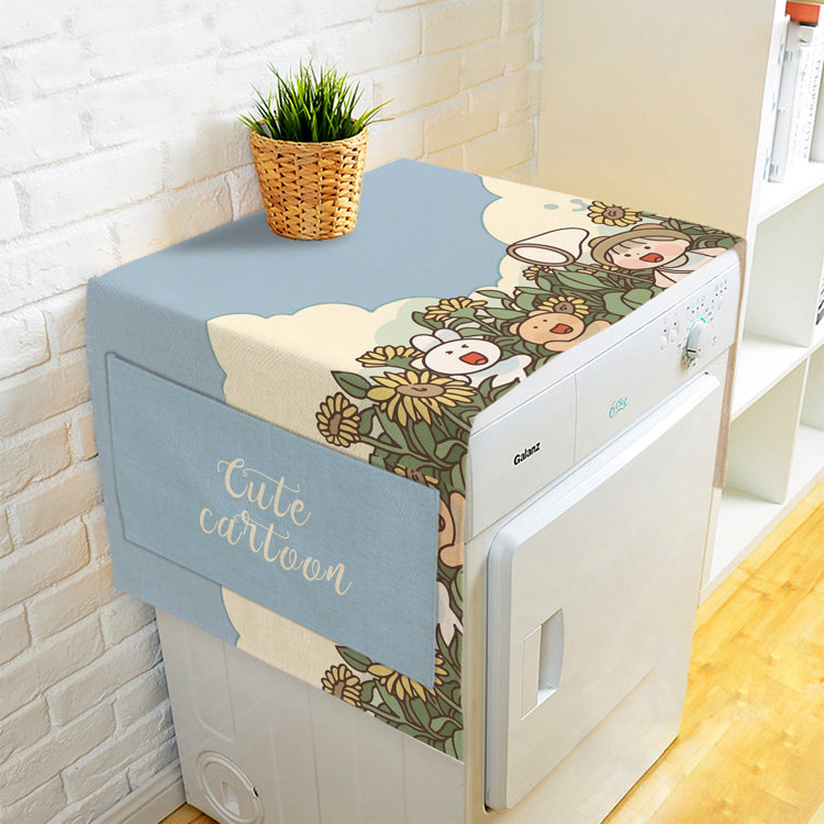 Мультяшный милый барабан для стирки, пылезащитная крышка, из хлопка и льна