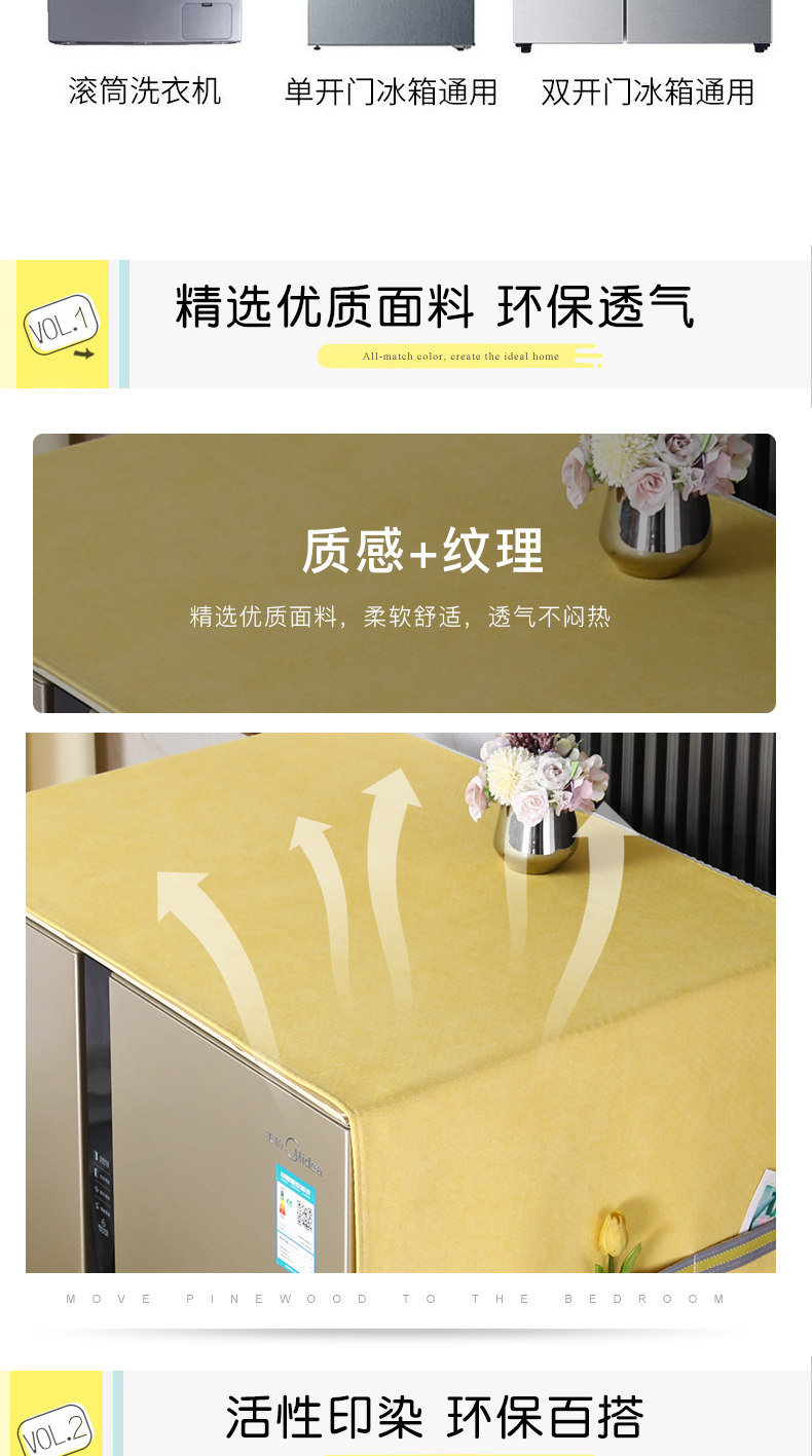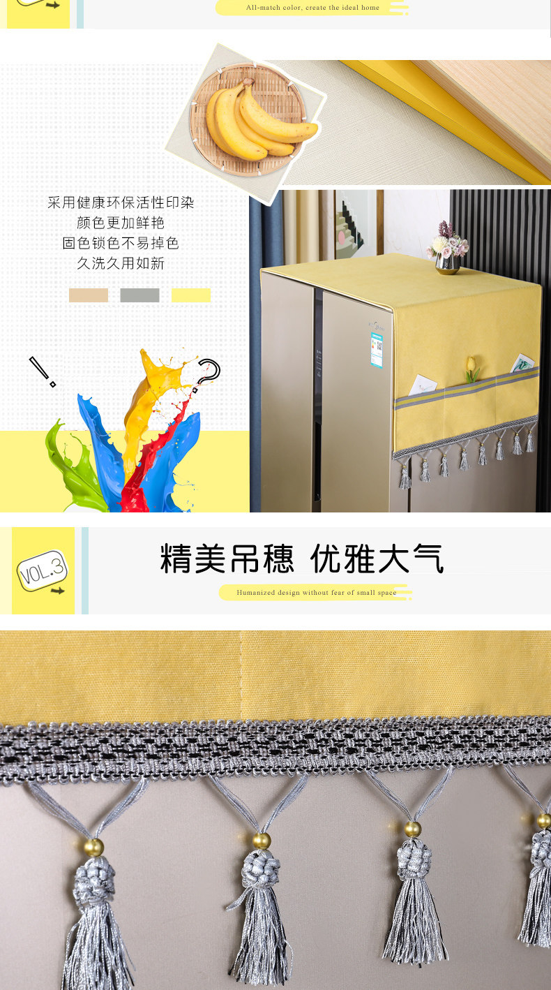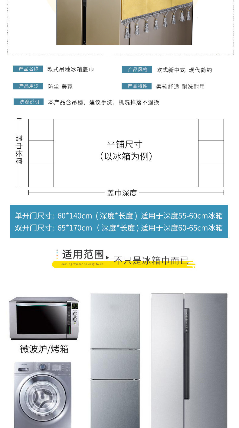 | Технические характеристики: | Полотенце для холодильника с одним отверстием [55*140 см], Чехол для стиральной машины [55*140см], Двойное открытие/складное полотенце холодильника [65*170 см] |