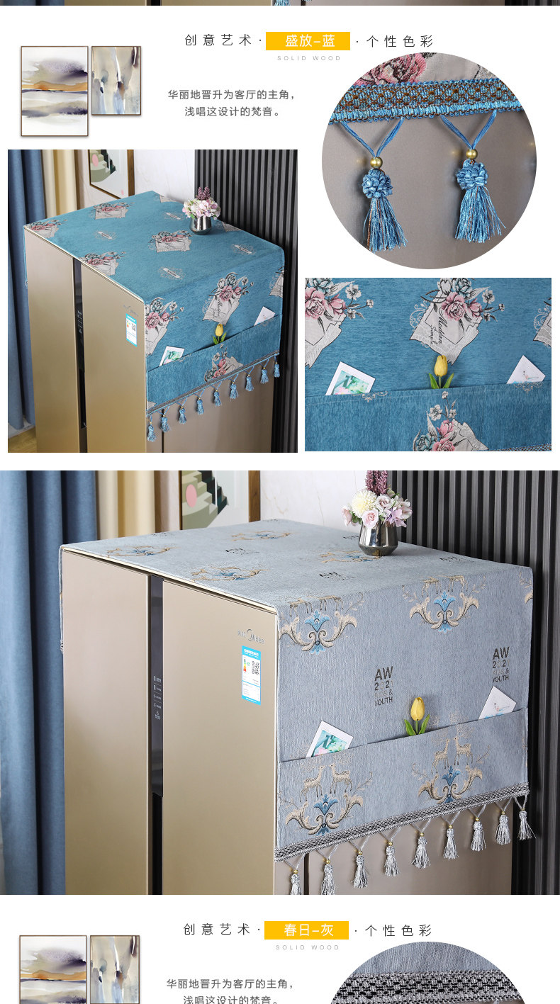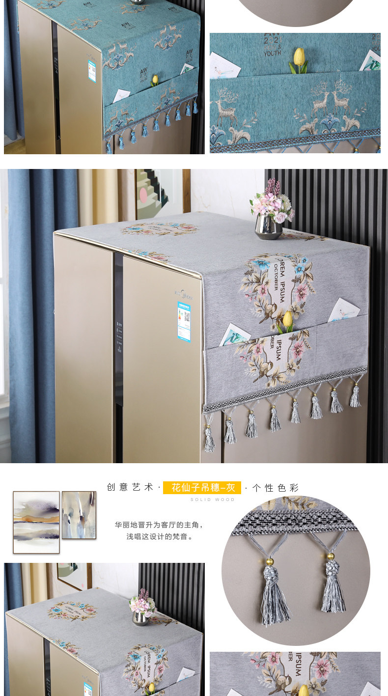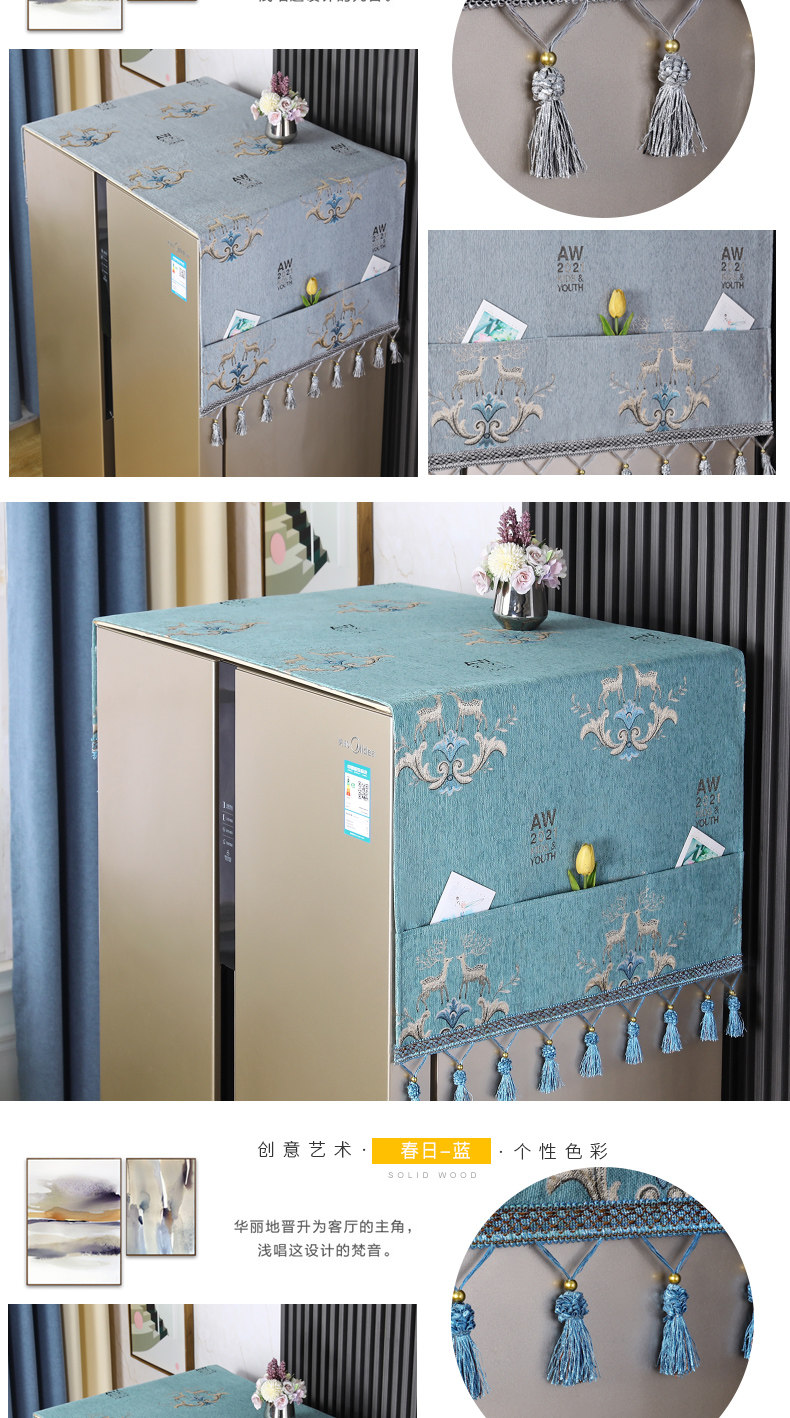 | Технические характеристики: | Полотенце для холодильника с одним отверстием [55*140 см], Чехол для стиральной машины [55*140см], Двойное открытие/складное полотенце холодильника [65*170 см] |