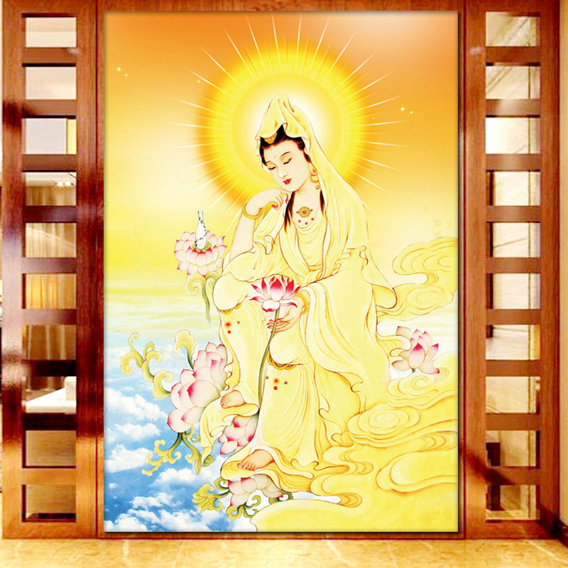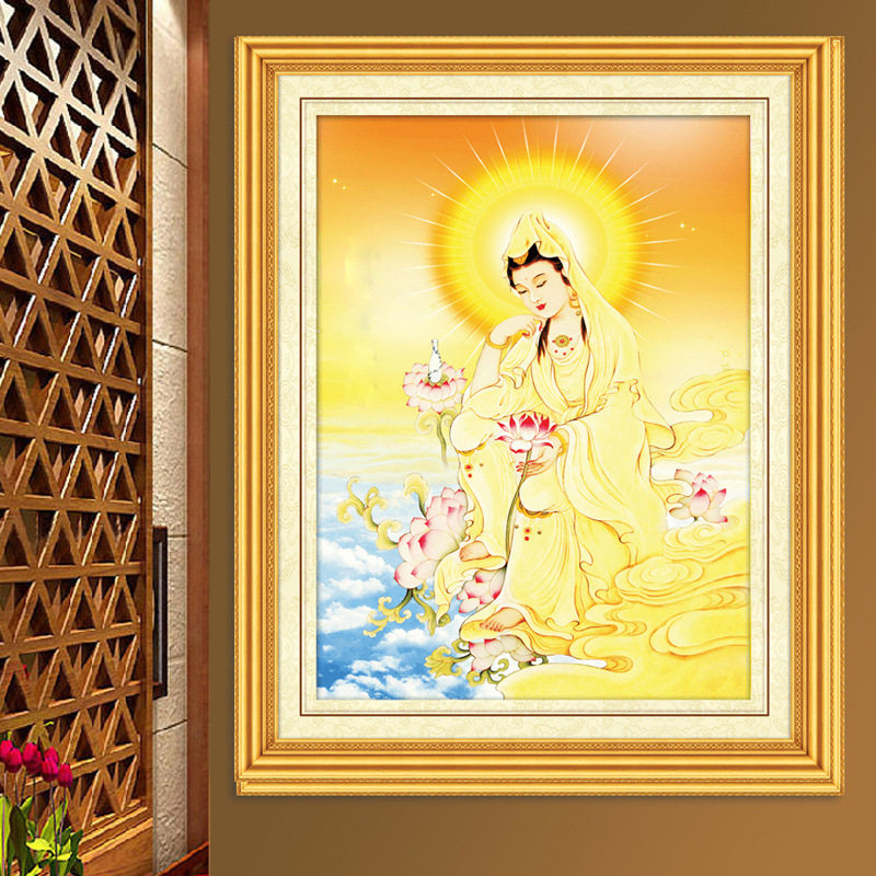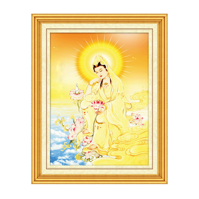 5D Diamond Painting, полная бурения новая гостиная, гуньян бодхисаттва статуя паста бриллиант -кросс -стежок сидящий лотос гуньян гуньян слегка кирпич и каменная живопись