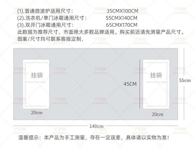 | Технические характеристики: | 60*60 【Стиральная машина, холодильник с одному -деревом】, 65*90 [Применимый двойной холодильник], 36*46 [Подходит для микроволновой печи], 40*50 [подходит для прикроватной таблицы], 40*60 [подходит для прикроватной таблицы], 50*50 [Подходит для прикроватных столов, стиральных машин], 50*60 [подходит для стиральной машины], 55*60 [Подходит для стиральной машины], Индивидуальная контактная консультация по обслуживанию клиентов |