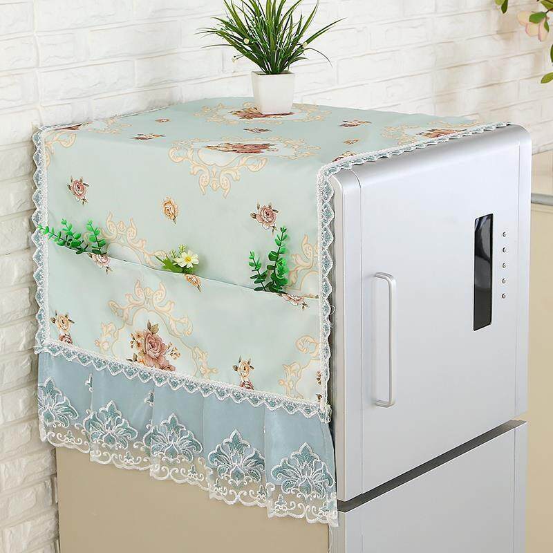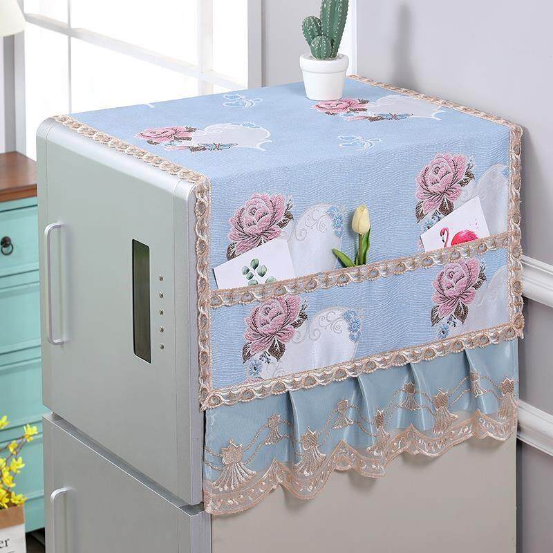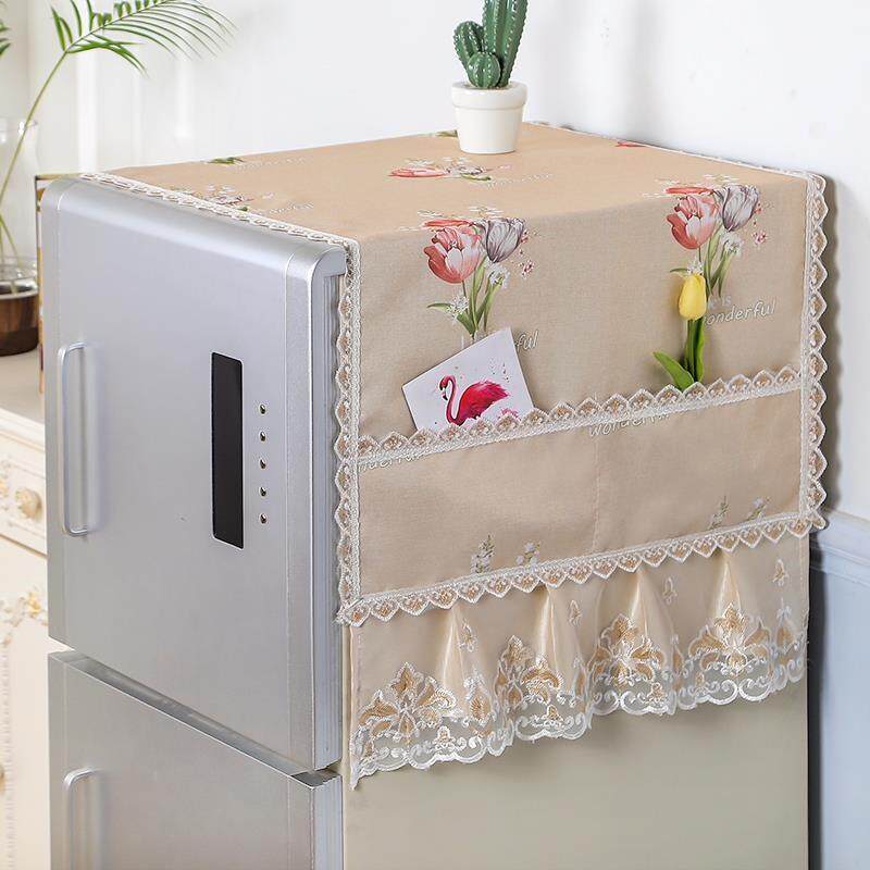 Холодильник ставит тканевую крышку, пылеустремленную крышку, полотенце холодильника на дверь -дверь, а шарф -стиральная машина покрывает полотенце
