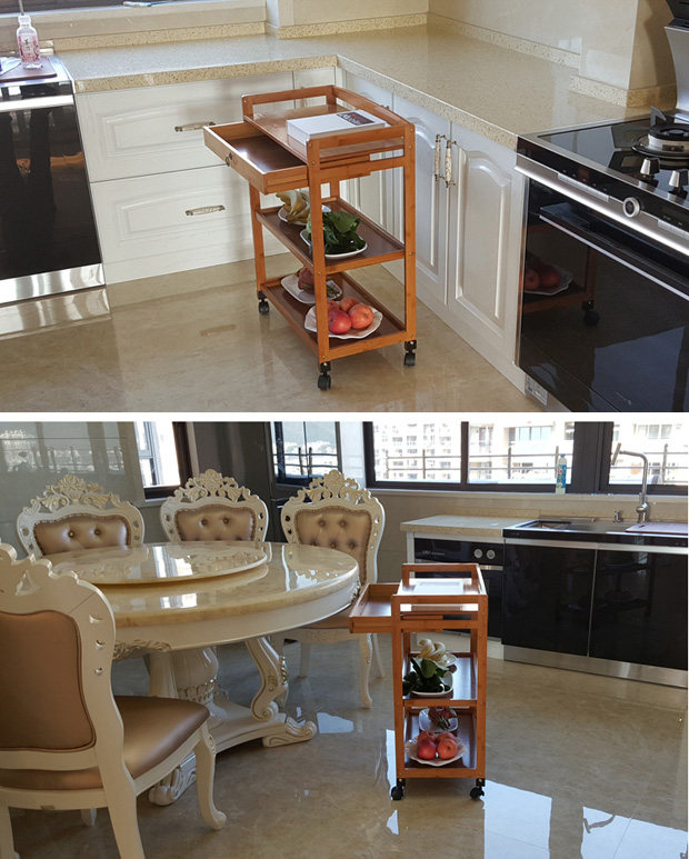 Нанчжу мобильная столовая тележка, горячий горшок, установил третью личную кухонную корзину с твердым деревом, специальная цена на чайный автомобиль, специальная цена