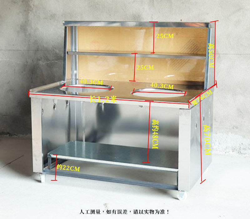 [注意:这款灶台沙县小吃设计的就是煮面条和馄饨] [炖汤] [蒸饺子] [炒菜都可以用,下面有4个轮子可以自由转动。在小吃店,大排档都是常用的哦。但是不建议推来推去。如果您已经组装过了,是影响2次销售的不可以退货的。亲们要考虑好在下单哦。]