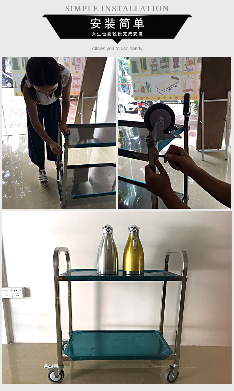 Грузовики из нержавеющей стали и напитков Двухквалосовый обеденный автомобиль, трехсторонные машины доставки, миски, чаша Hot Pot Car Trail
