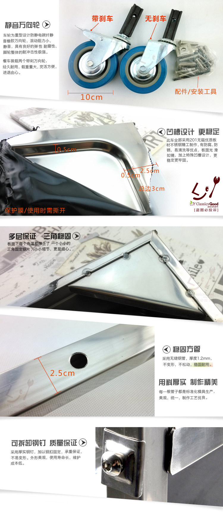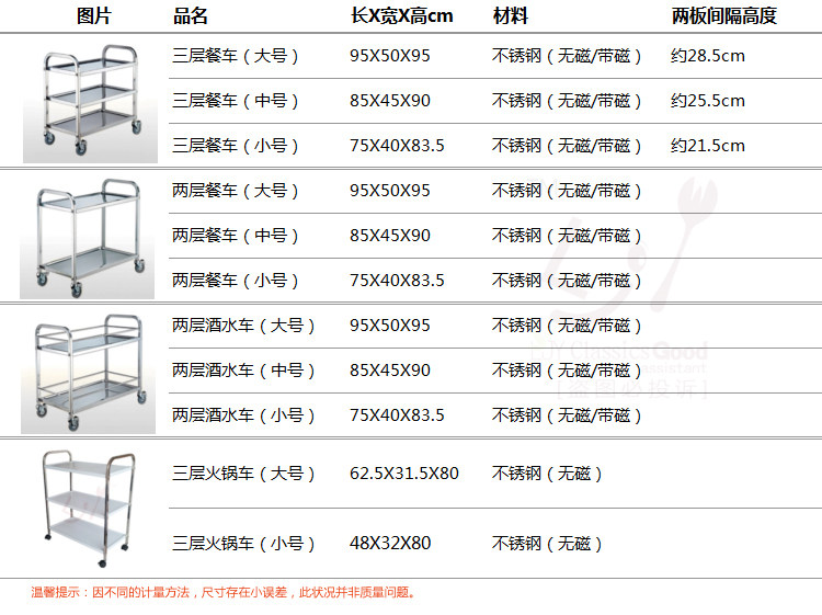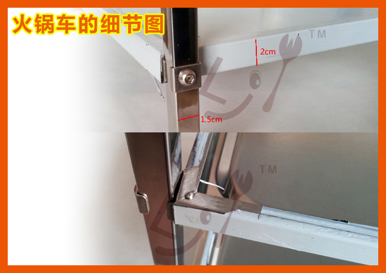 2: Каждый обеденный автомобиль поставляется с четырьмя колесами, двумя колесами с тормозами, двумя колесами без тормозов, (горячий горшок с столовой не поставляется с тормозными колесами) с монтажными винтовыми инструментами.