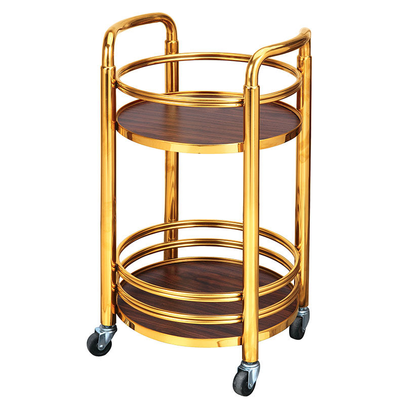 Круглая двухэтажная тележка из натурального дерева из нержавеющей стали, вагон-ресторан для домашнего использования