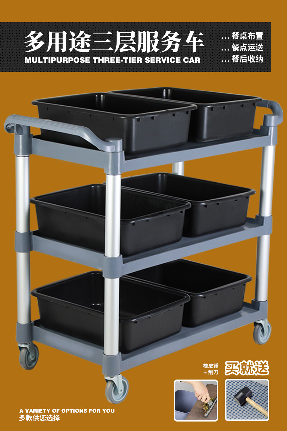 Ресторан Трехно -состальный пластиковый автомобиль Hotpot Restaurant Caibian Rack Multi -Function может двигаться с колесной корзиной