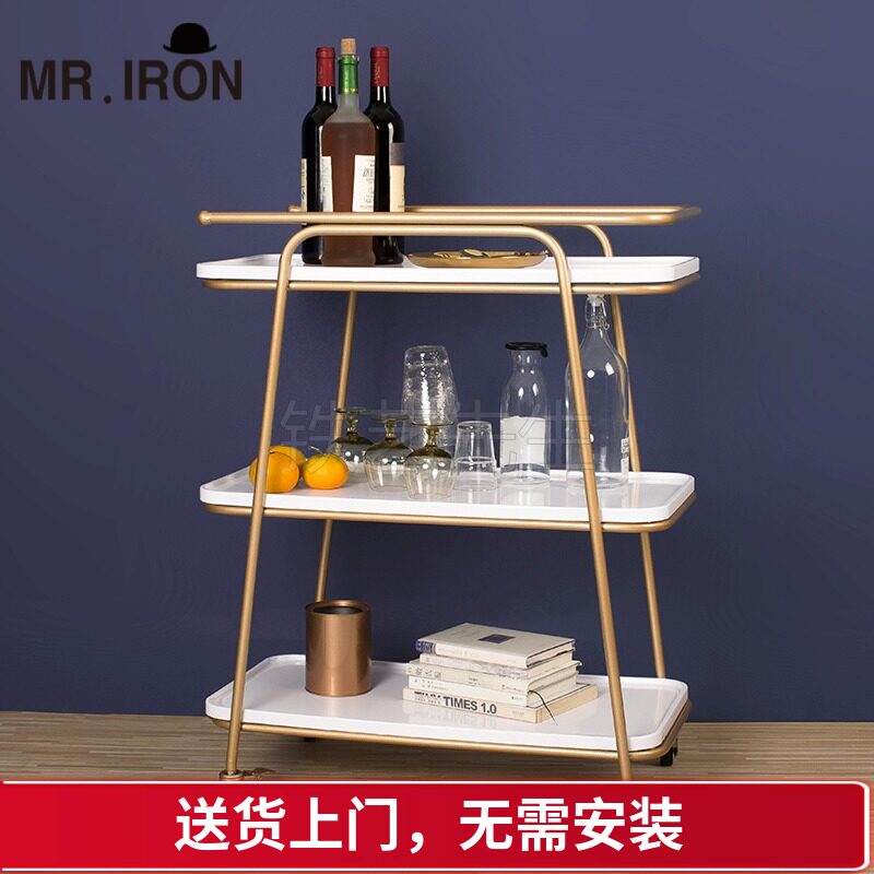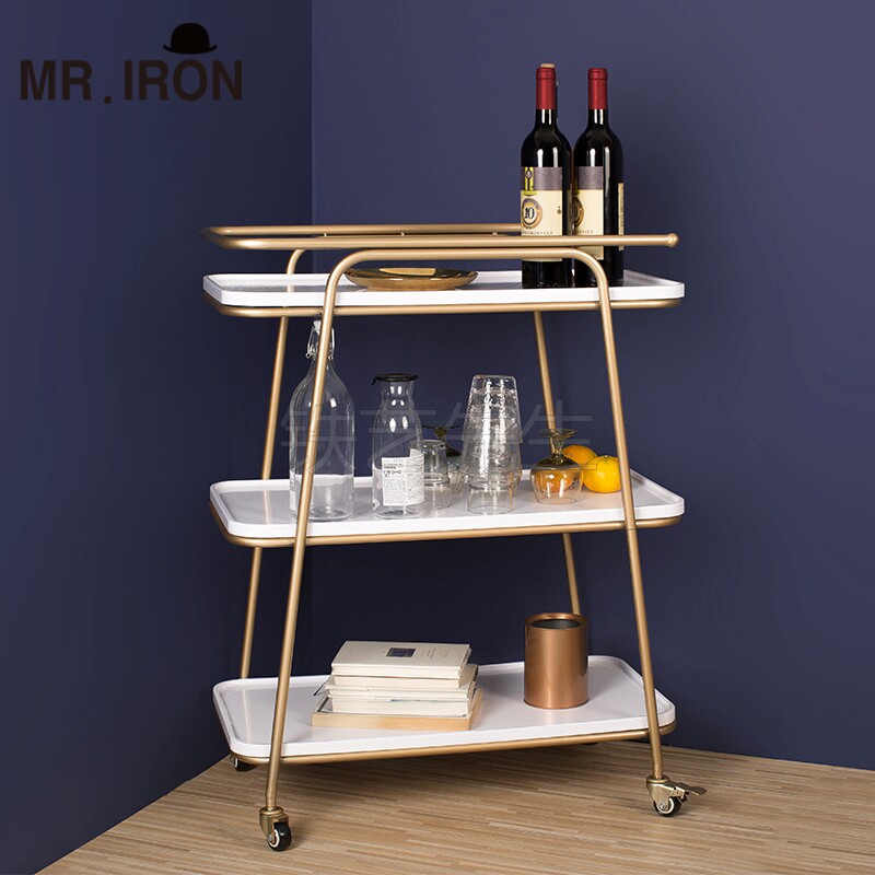 Обеденная тележка в европейском стиле для ресторана, трехъярусная тележка для вина из кованого железа, чайная тележка для дома, мобильная с колесиками, боковая полка для еды