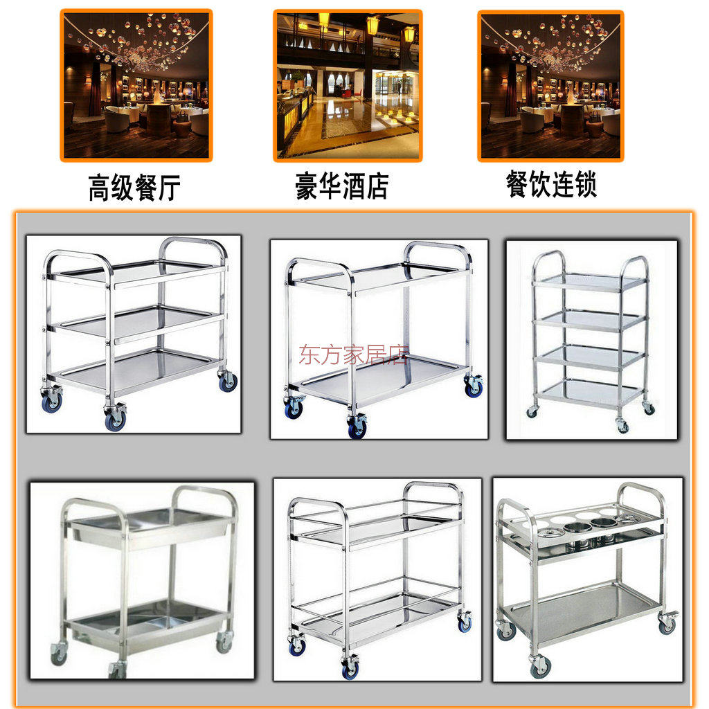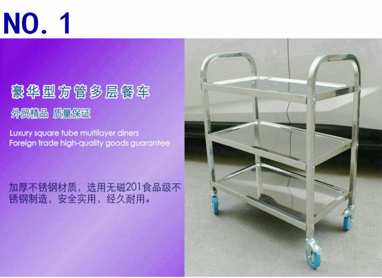 Магнитный обеденный автомобиль из нержавеющей стали с двумя небольшими небольшими тележками.