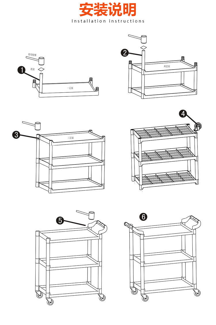 Вагон-ресторан, универсальная пластиковая тележка для коммерческого использования, увеличенная толщина