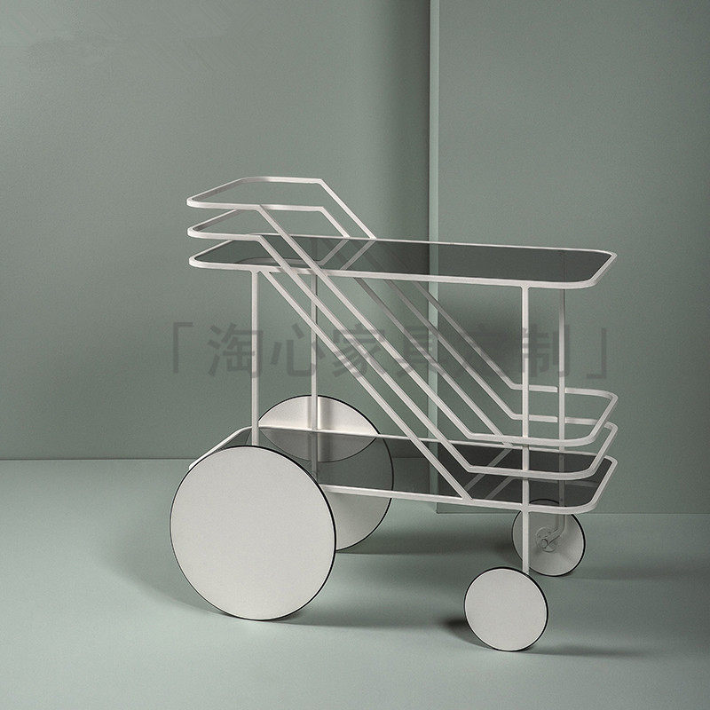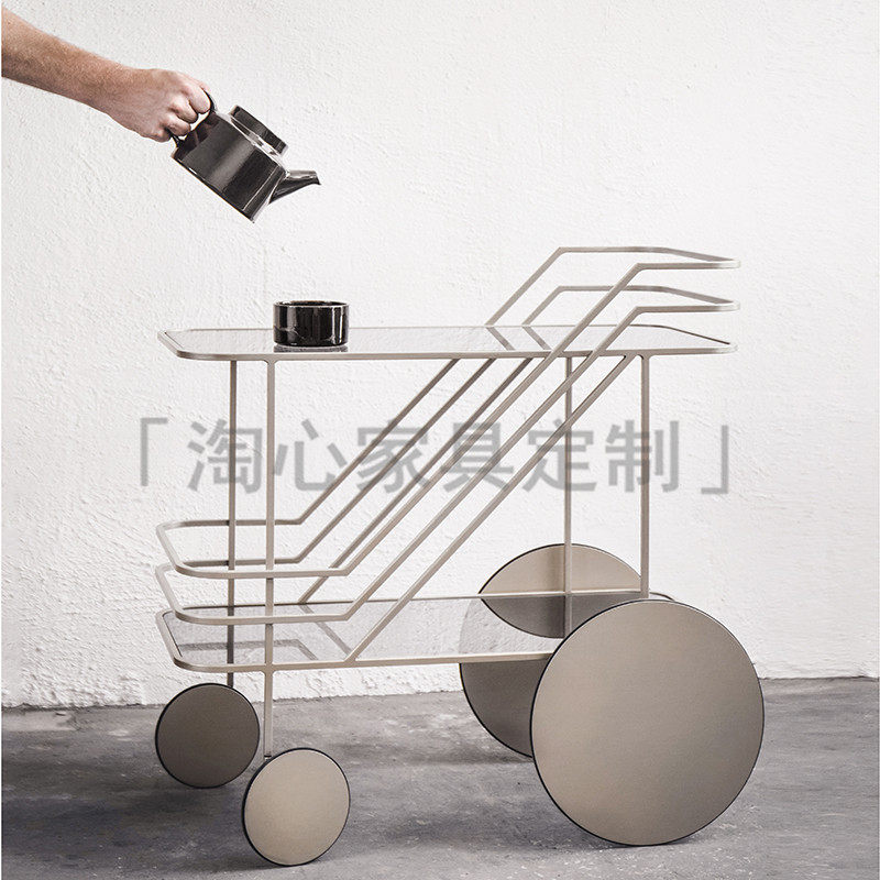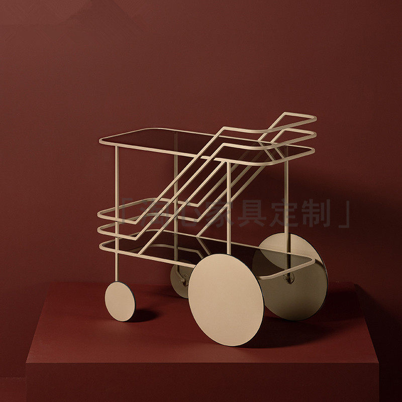 Рука -Пушивая винный автомобиль с закусочной ресторан золотой торт.