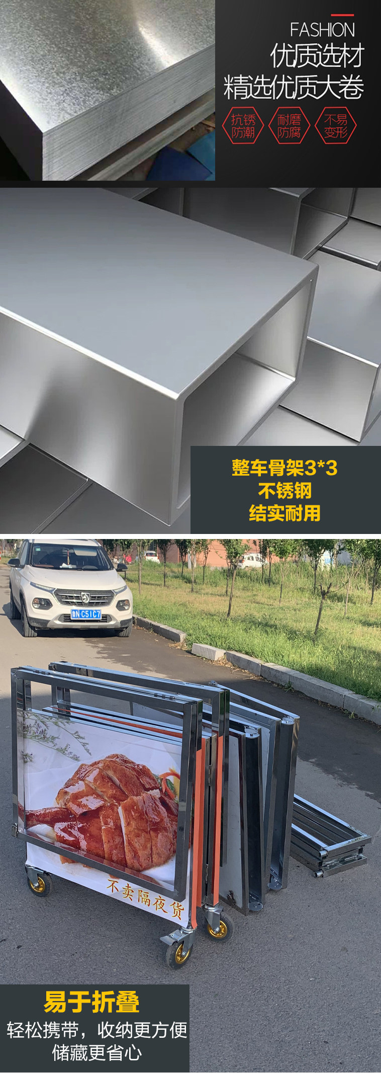 Складная закусочная тележка из нержавеющей стали, универсальный вагон-ресторан