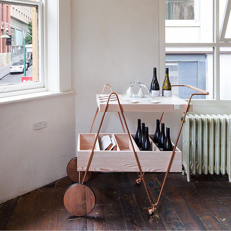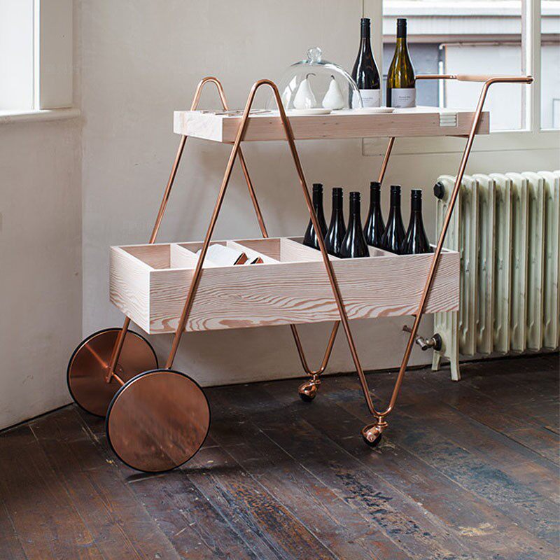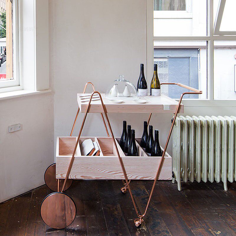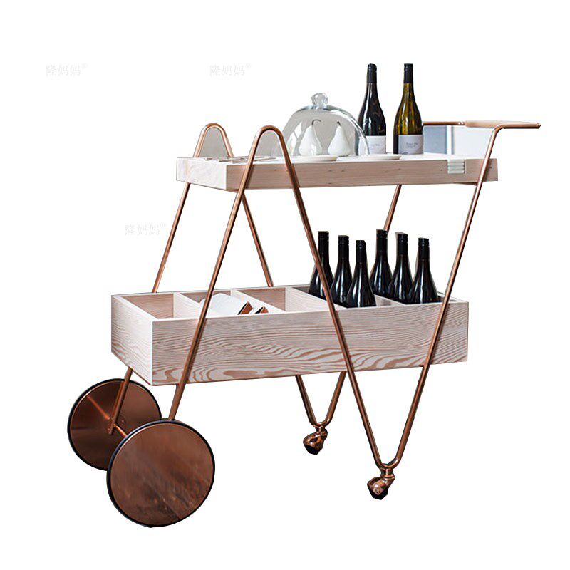 Золотой вагон-ресторан, тележка из натурального дерева, вилла, стенд, розовое золото