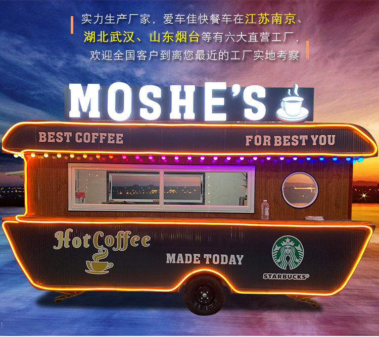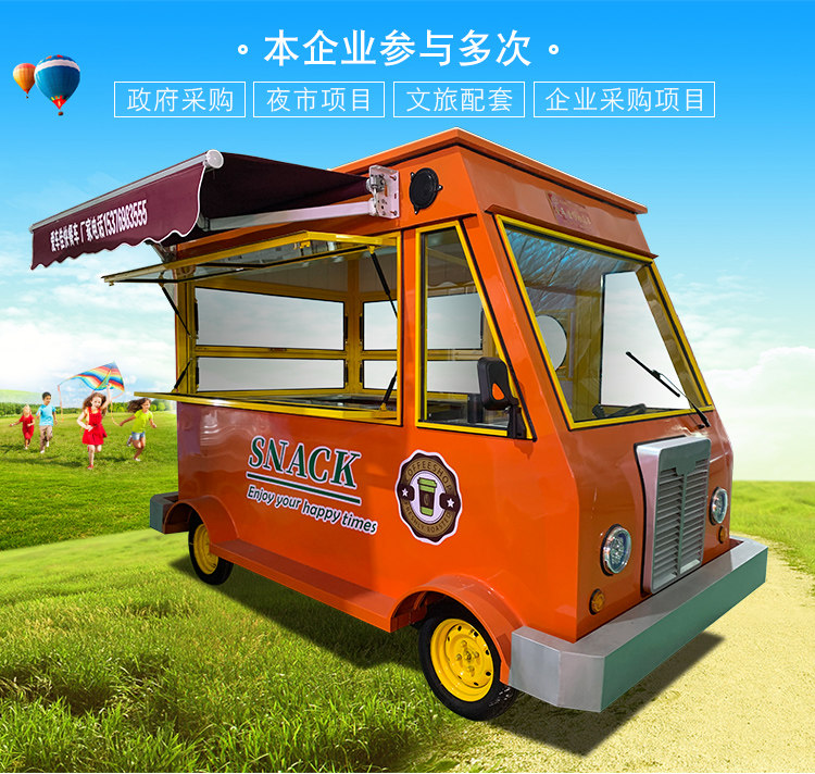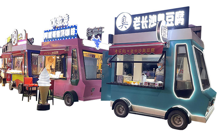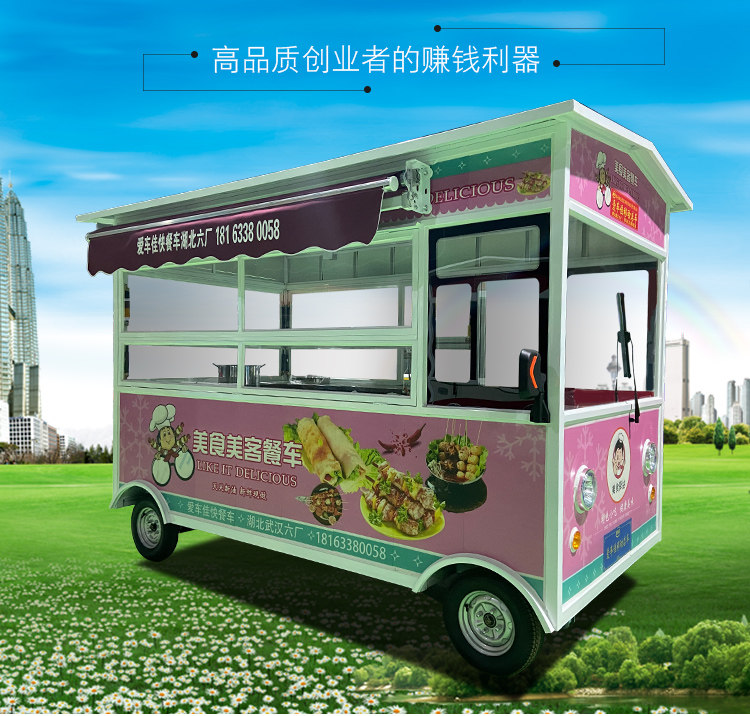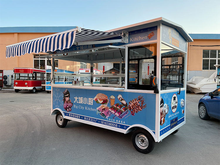 Электрический вагон-ресторан, электромобиль на четырех колесах, закусочная тележка