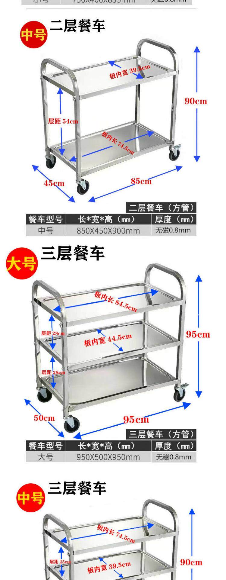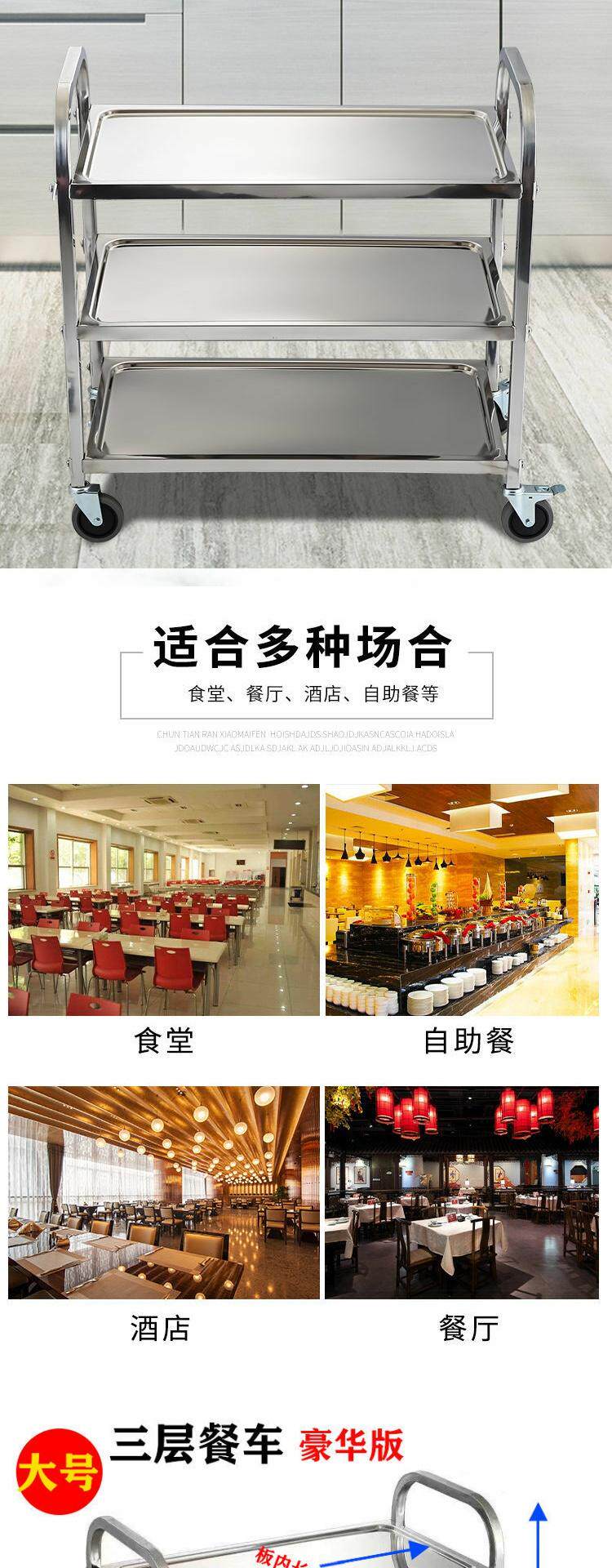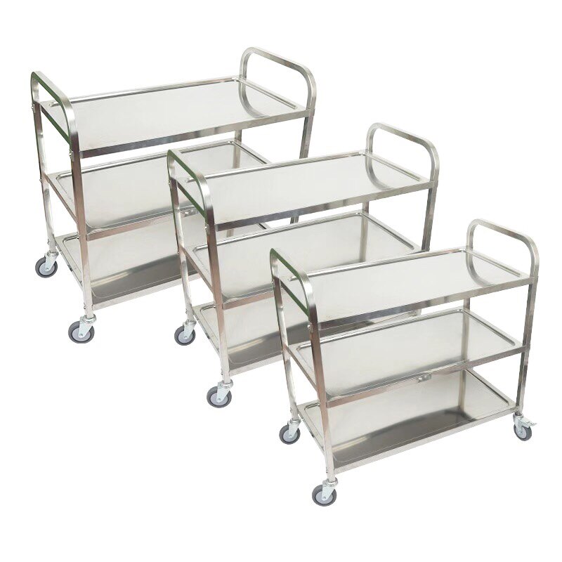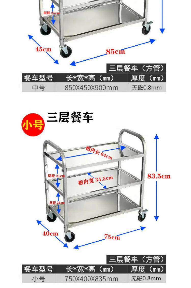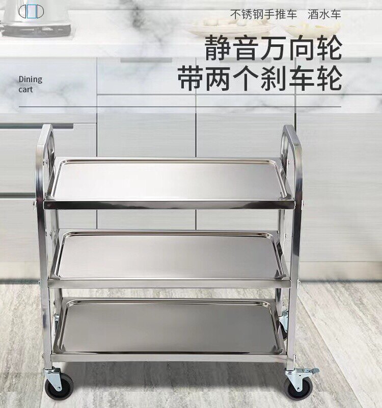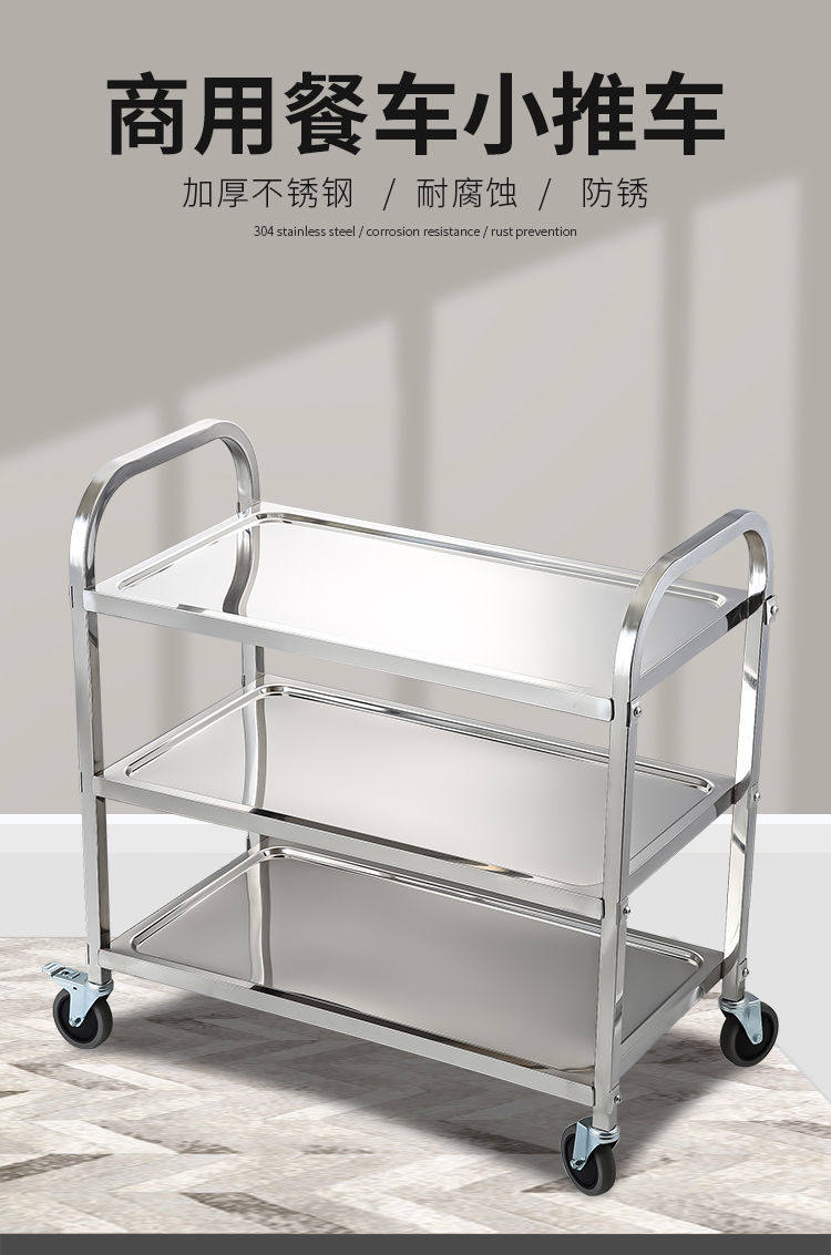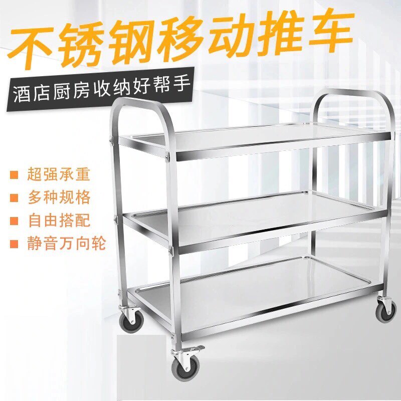 Обеденная тележка из утолщенной нержавеющей стали, тележка для напитков в двух- и трехэтажной коммерческой столовой отеля, мобильная тележка для сбора еды и мисок.