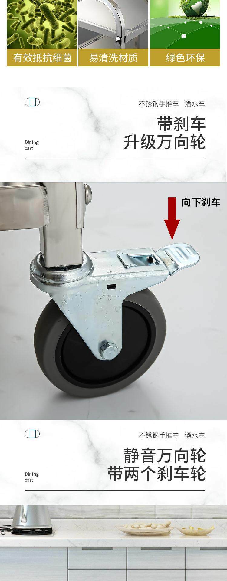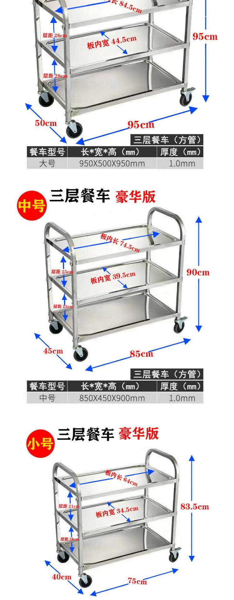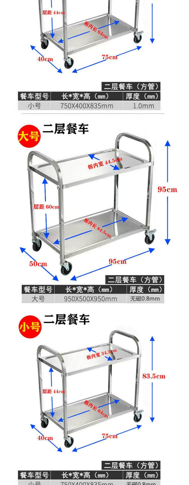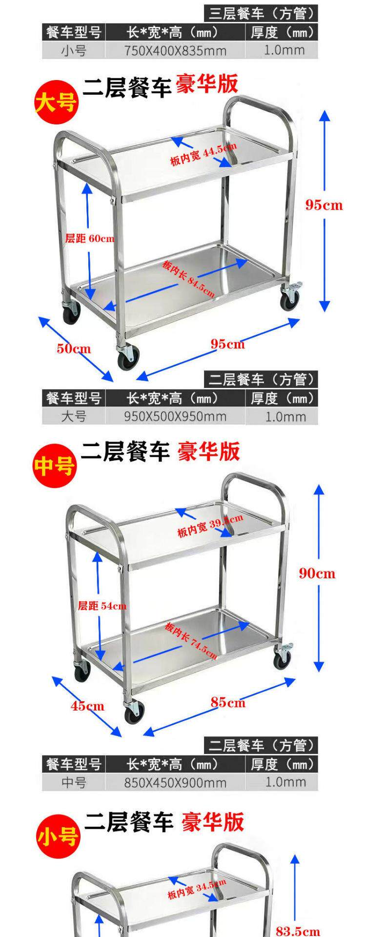 Обеденная тележка из утолщенной нержавеющей стали, тележка для напитков в двух- и трехэтажной коммерческой столовой отеля, мобильная тележка для сбора еды и мисок.