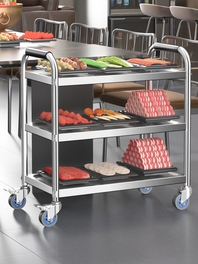 Обеденная тележка из нержавеющей стали, коммерческая ресторанная мобильная трехэтажная тележка для доставки еды, тележка для сбора чаши, двухэтажная тележка для киоска, ресторанная столовая