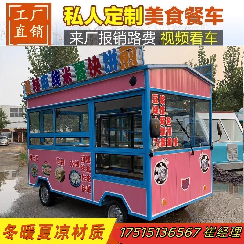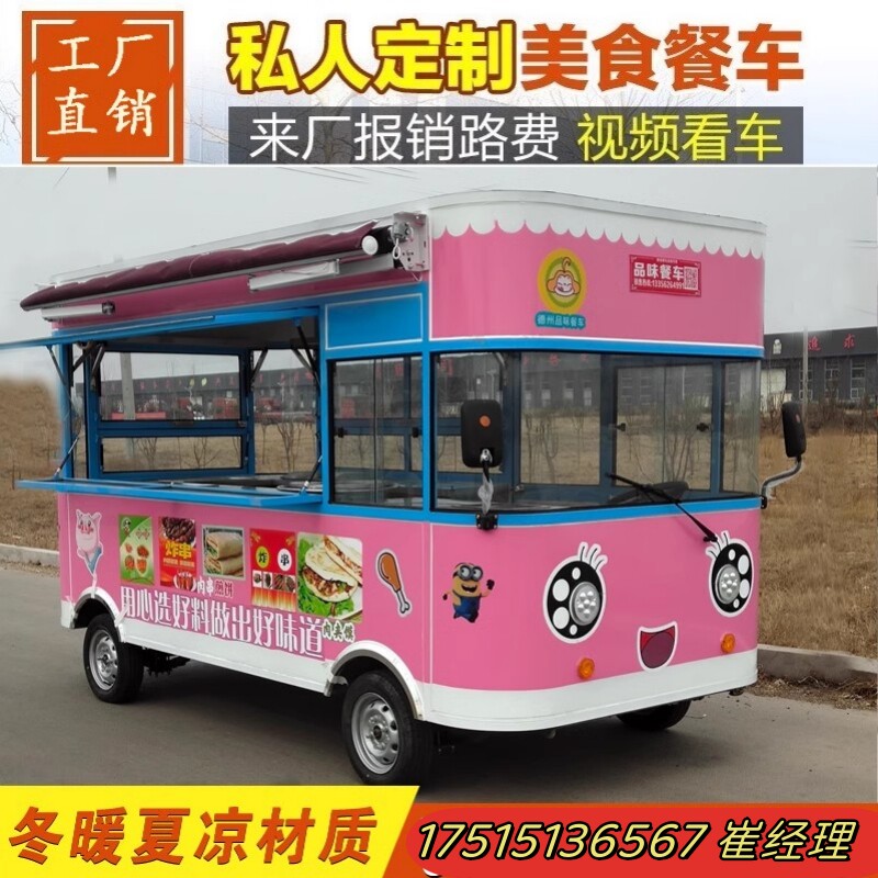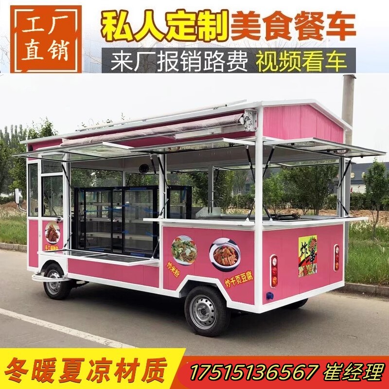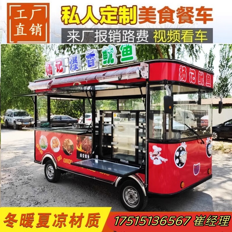 Электрическая универсальная закусочная тележка, вагон-ресторан для коммерческого использования на четырех колесах