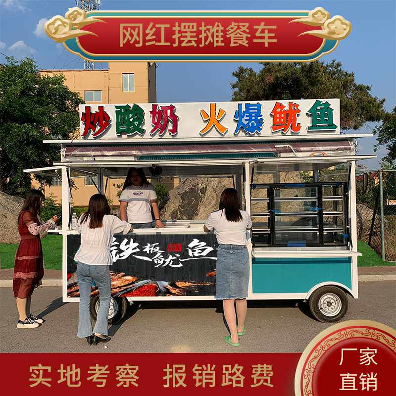 Электрическая трехколесная закусочная тележка, универсальный вагон-ресторан на четырех колесах