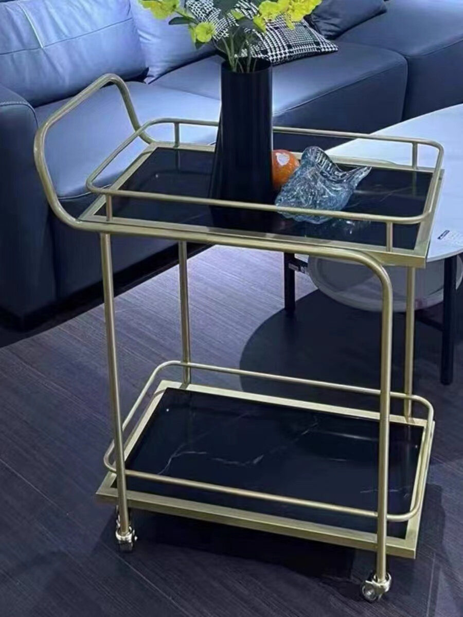 Европейский стиль двух -слоя креативного железа, легкий роскошный винный автомобиль Домохозяйство коммерческая небольшая корзина Мобильная столовая доставка автомобилей.
