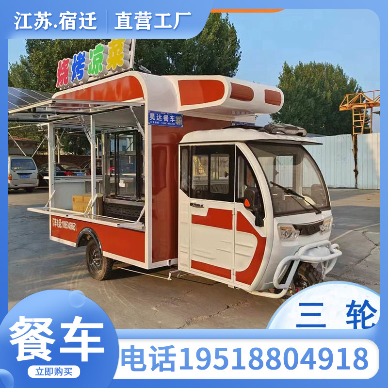 Электрическая трехколесная закусочная тележка для коммерческого использования, универсальный вагон-ресторан