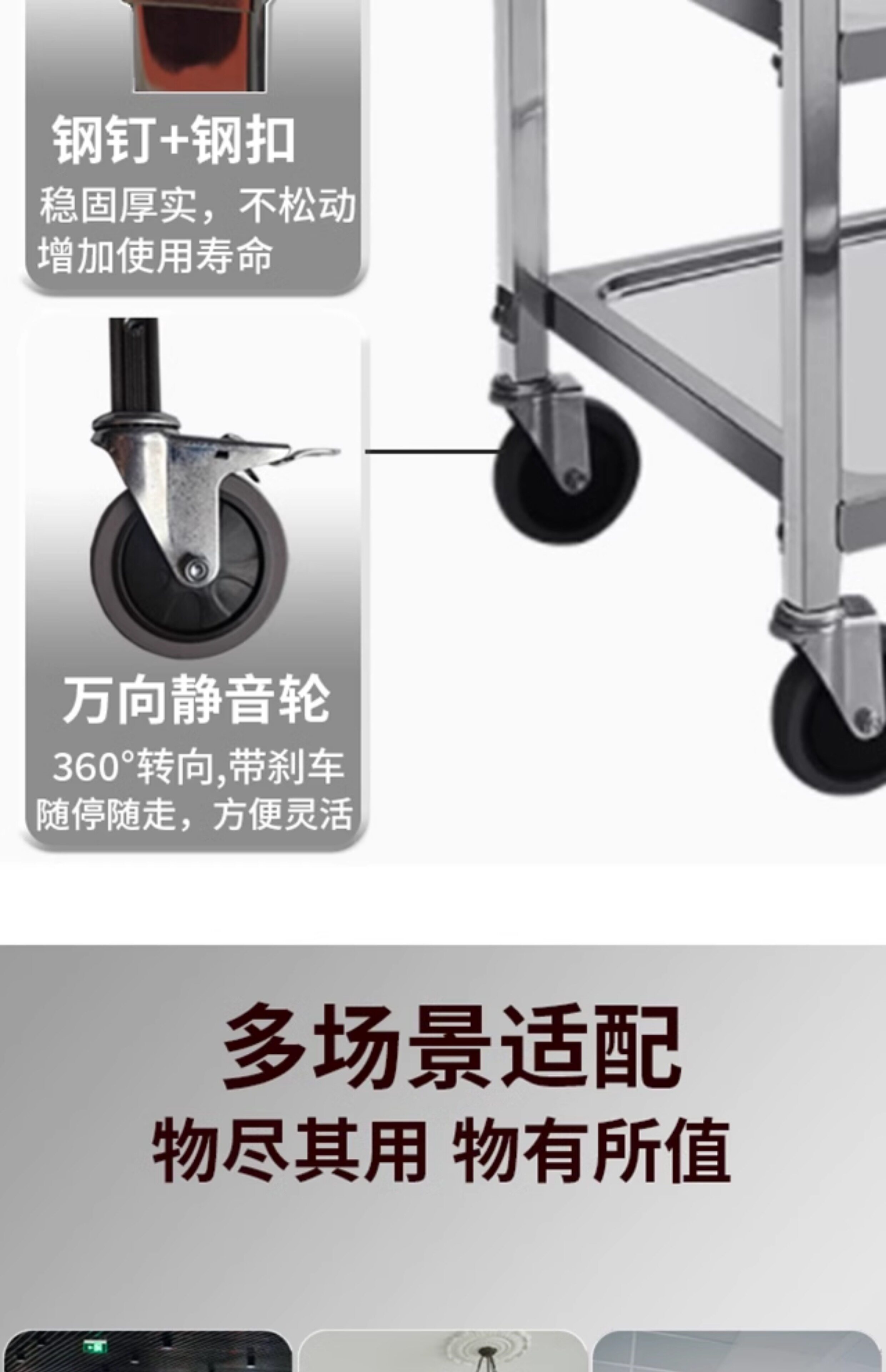 Универсальный вагон-ресторан из нержавеющей стали для коммерческого использования, продуктовая тележка, увеличенная толщина
