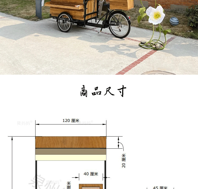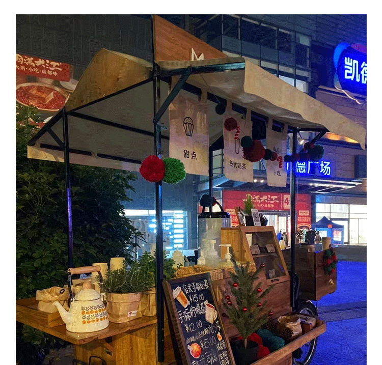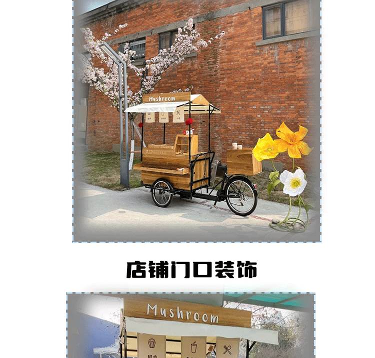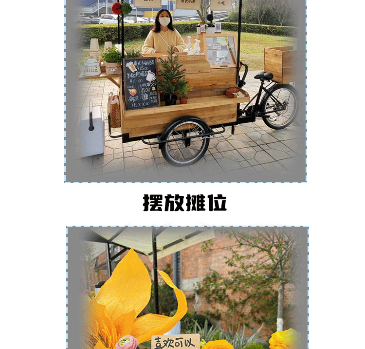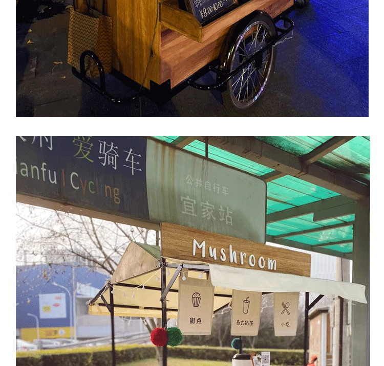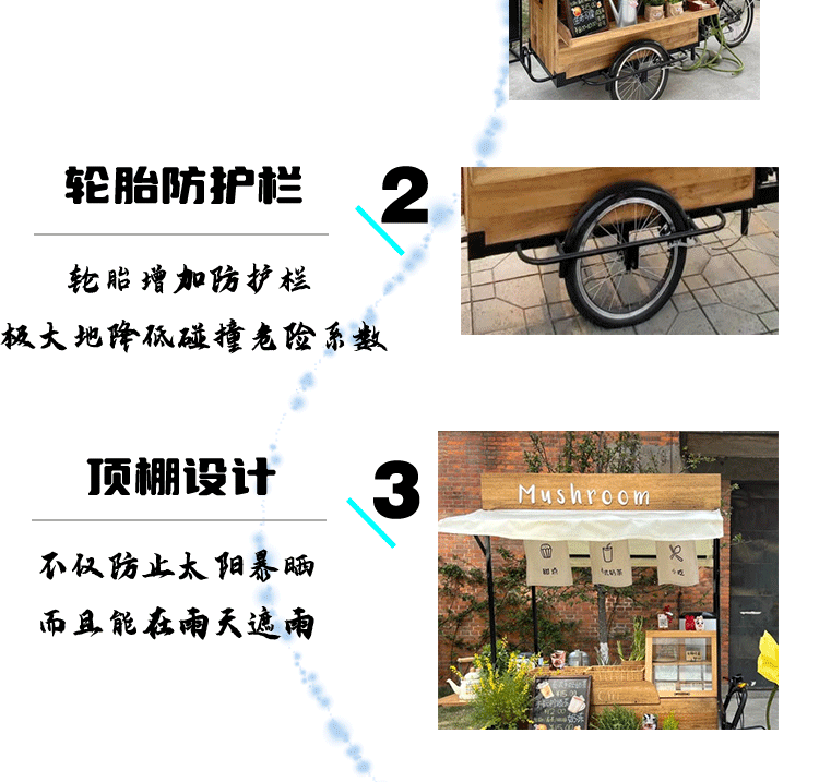 Американская антикварная мобильная трехколесная тележка для кофе из цельного дерева, обеденная тележка, рекламный киоск торгового центра, тележка для показа живописных мест ночного рынка
