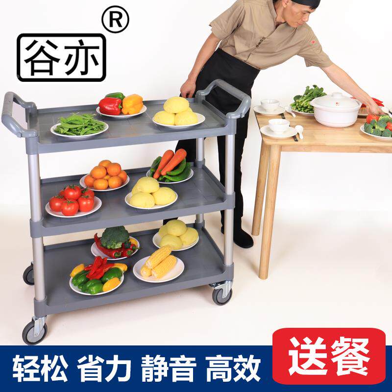 Тележка для сбора еды, тележка для доставки еды, тележка для доставки общественного питания, трехслойная миска для сбора сервировочной посуды, передвижной ларек с горячими горшками в коммерческом ресторане