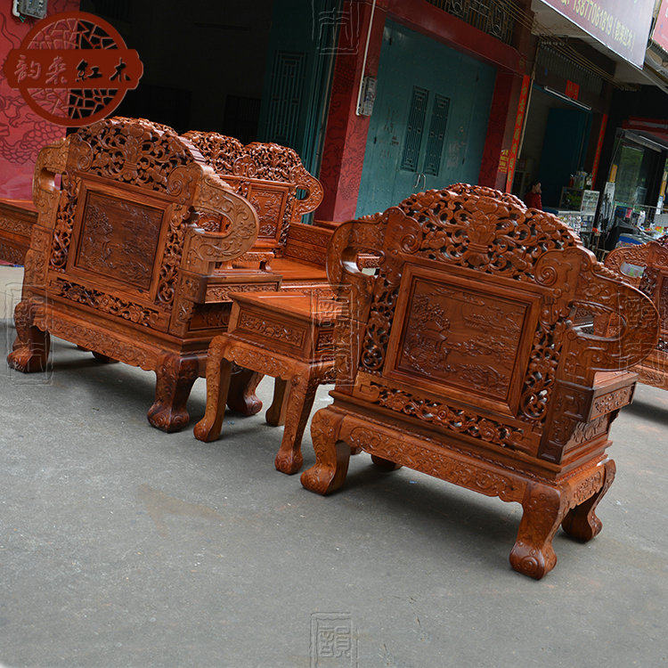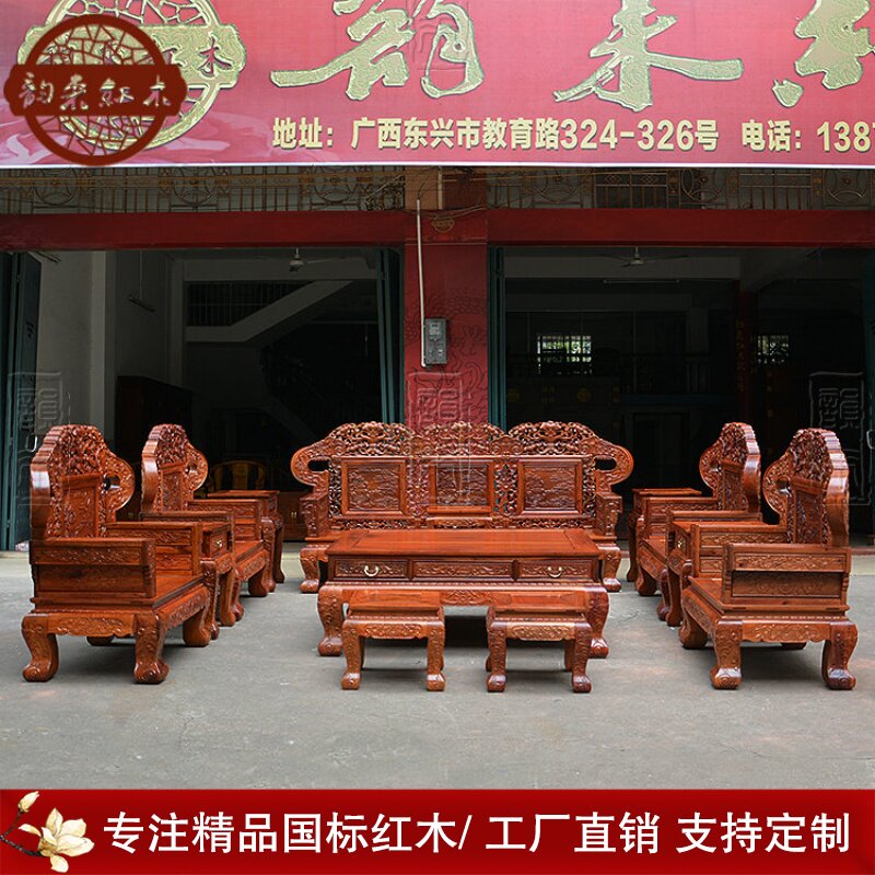Диван из Мьянмы, двусторонний резной комплект, мебель из розового дерева из натурального дерева, 13 шт