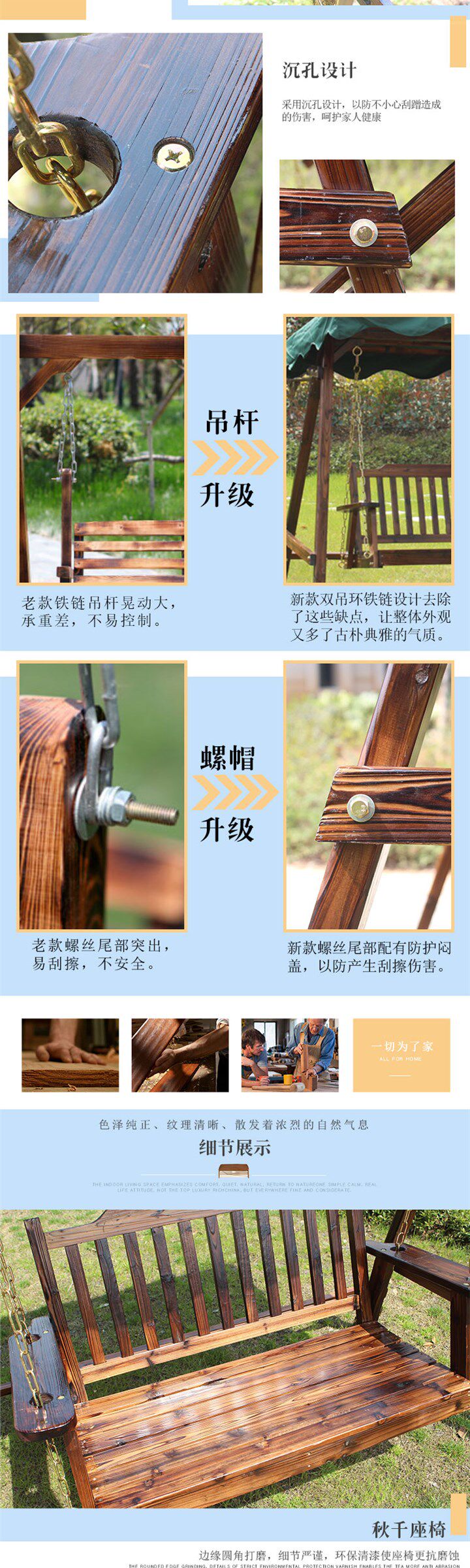 Качели, качалка для взрослых, вилла для двоих из натурального дерева