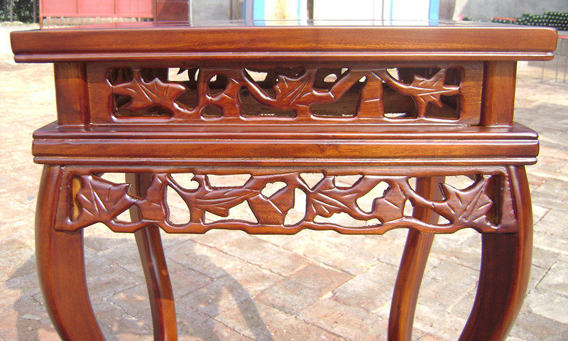 Специальная поставленная почтовая цветочная стенда с твердым деревом мебели антикварные цветы и несколько резных цветов и деревянных деревянных деревянных цветочных платформ балкон балкон в помещении.