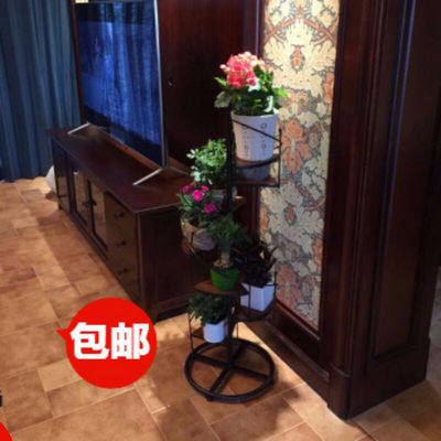 Американская подставка для цветов из кованого железа, подставка для цветочного горшка из цельного дерева, подставка для цветов в помещении, гостиной, сборка, металлическая многофункциональная
