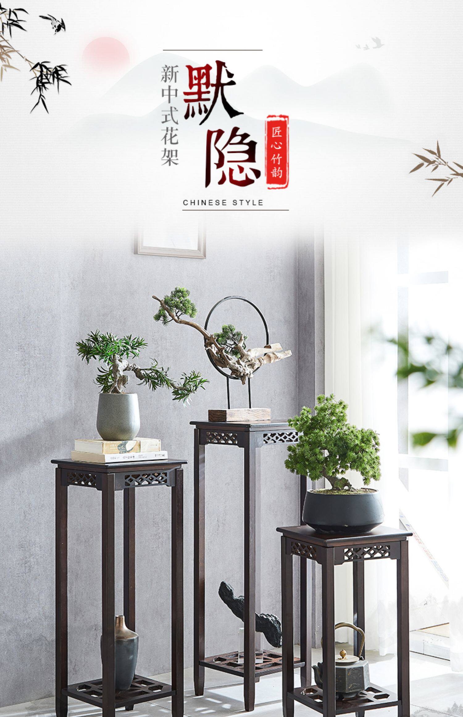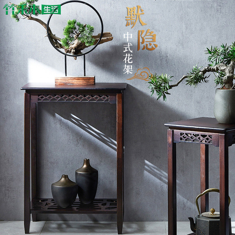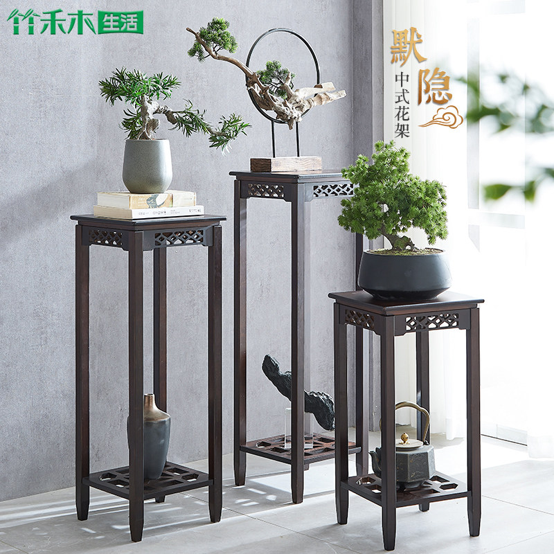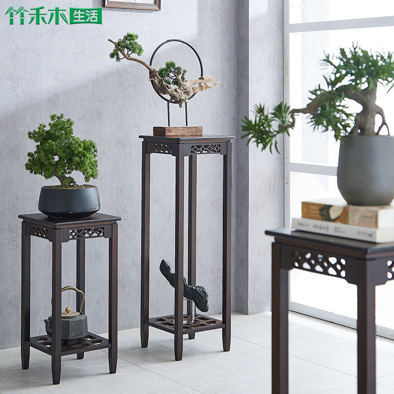 Цветочная гостиная пол -на полку комнаты цветочный горшок Новый китайский цветочный стенд бамбук и дерево имитация