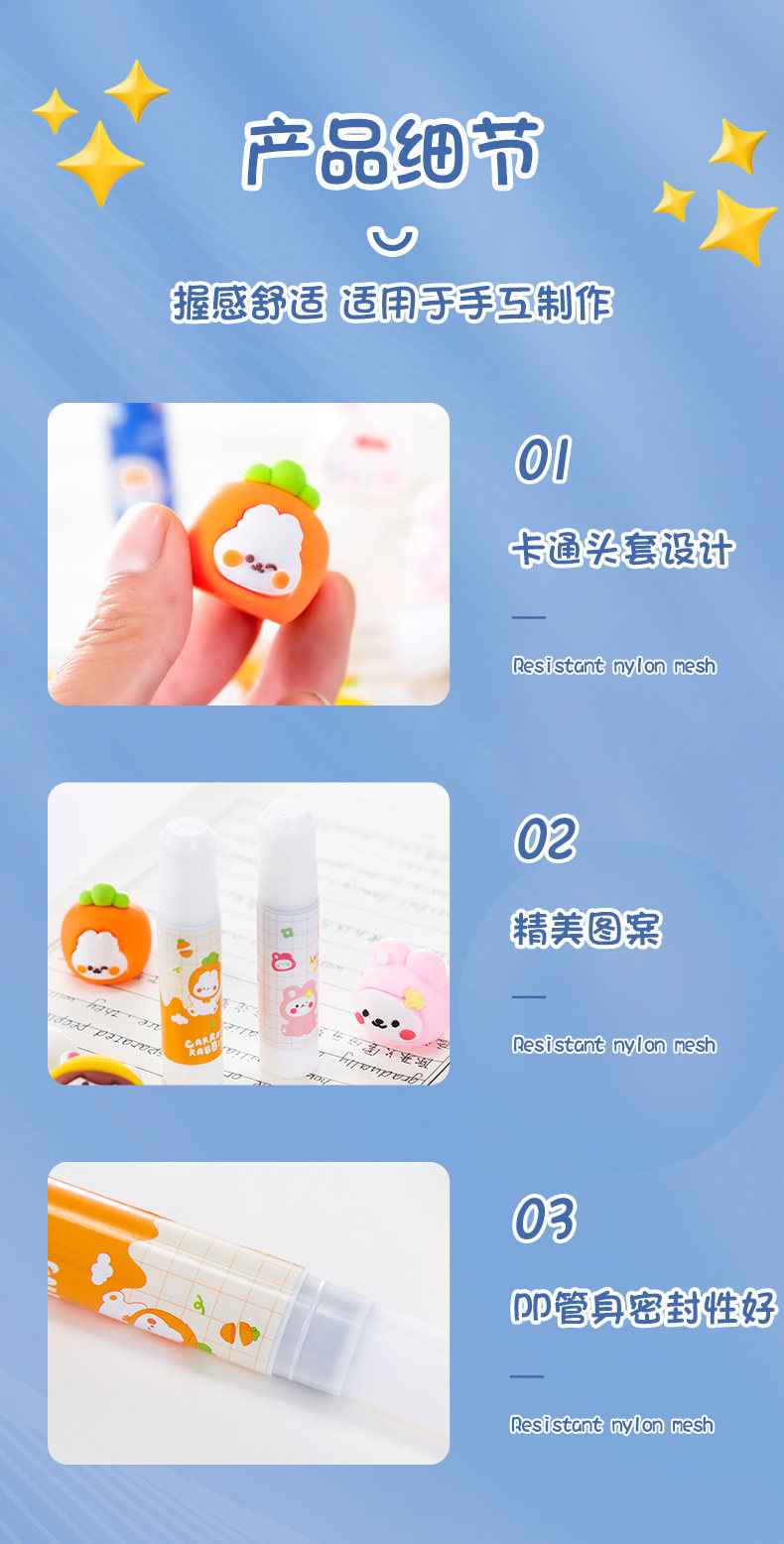 | Цвет: | Милый медведь твердый клей, Астронавт твердый клей, Пшеничный соус сплошной клей, Морковный кролик сплошной клей, Клубничный кролик сплошной клей, Beibei Rabbit Solid Glue |