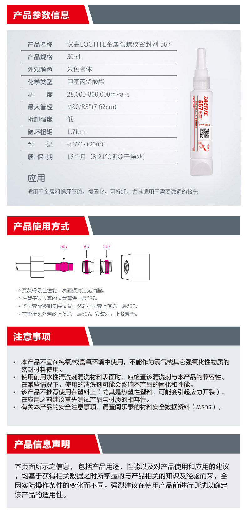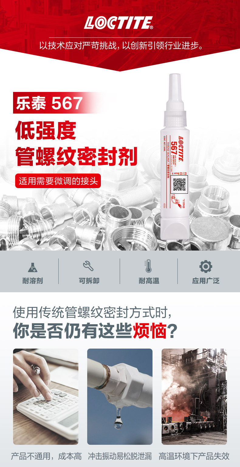 | Цвет: | Loctite 567-50 мл температурная стойкость 200 ° C Сертификация NSF Домохозяйство, Lotte 567-250 мл температурная устойчивость 200 ℃ Сертификация NSF Домохозяйство |