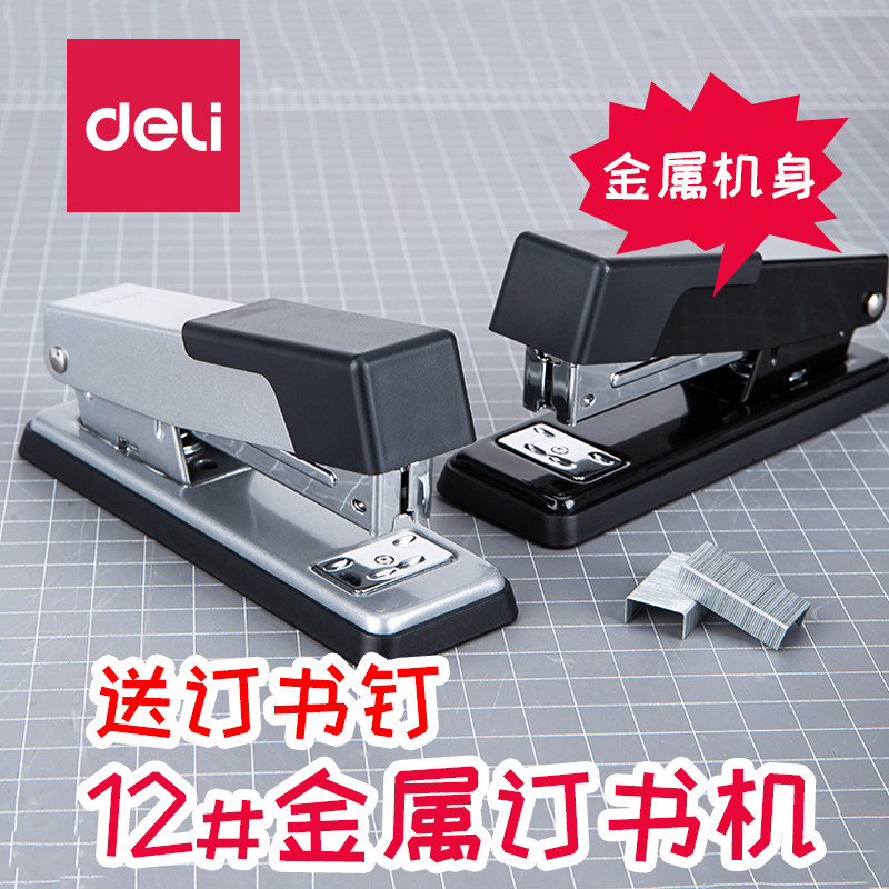 Deli Metal Body 12#Машина для бронирования среднего числа отправляет студентов ногтей с помощью устройства для бронирования стандартного типа ногтей Офис Универсальный тип можно забронировать 20 штук бумаги для бронирования ногтей
