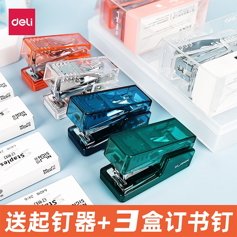 Машина для бронирования Deli Высоко -значение мини -маленькая переплетная книга Прозрачная цвет Студент использует машину для ногтей милая девочка -кармана для привязки к сердцу маленькая настройка ветра Машина Домашняя Дети с портативной маленькой моделью